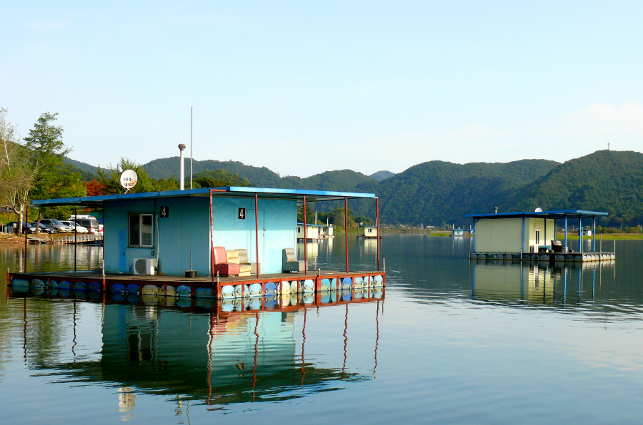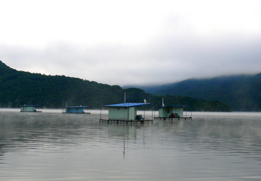 수위가 만수위가 되면서 상류 수초대에도 좌대들이 배치되었습니다.