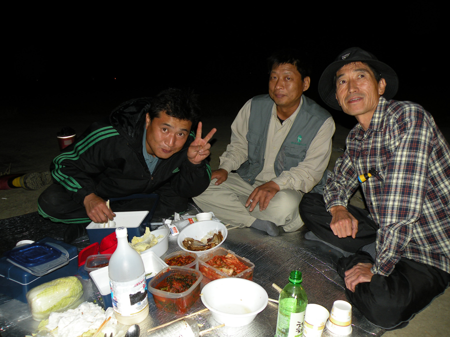 배가 고품에 삼겹살을 구워 막걸리도 한잔하며 즐거운 시간을 보내고 본격적으로 낚시를 시작한다.