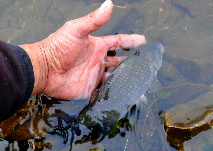 오후 시간에 옥수수 미끼에 채비가 들어가면 바로 잔씨알이 입질을 해 주는데 먹성은 좋아서 옥수수 두알 꿴 것을 3, 4치급이 한입에 먹고 나온다.