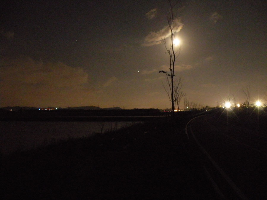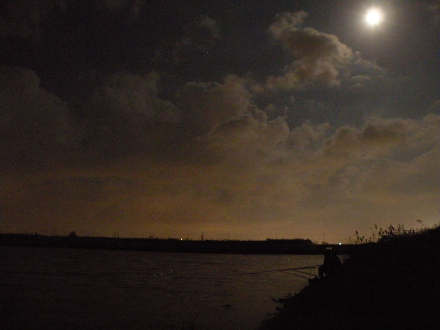 저녁 8시경에 검단수로에 도착하니 몇 분의 조사님이 낚시를 하고 계시는데 바람은 엄청 강하게 불고 보름도 며칠 지났는데 달이 무척이나 밝다.
