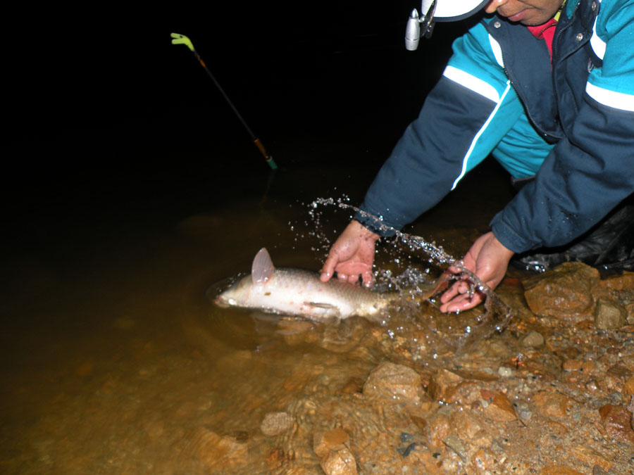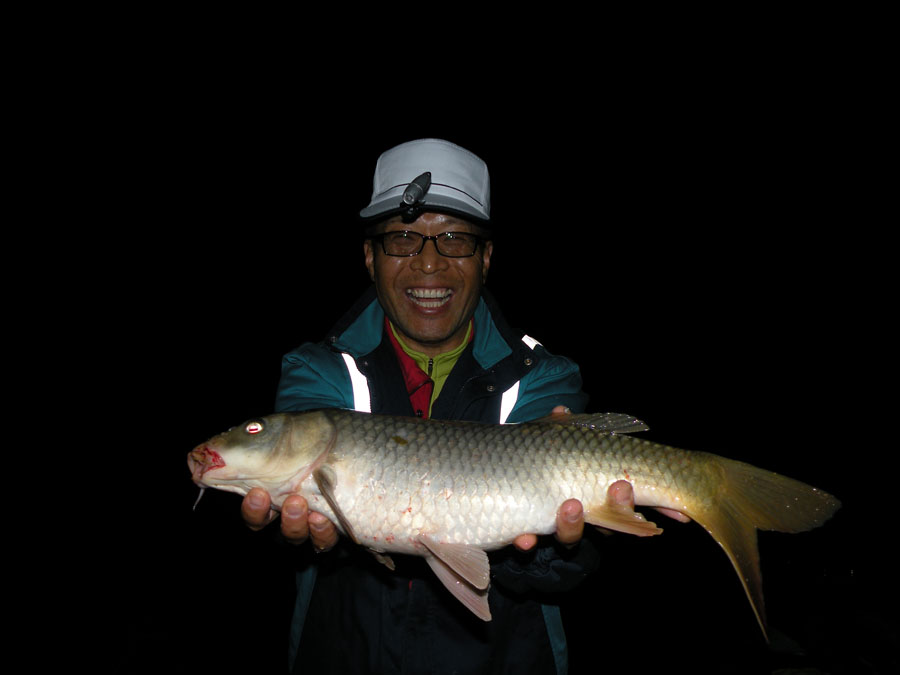 그러나 이번에는 오일짱님이 11시 30분경에 60cm 잉어를 걸어 한 5분정도 손맛을 보시고 낚아 올리신다.