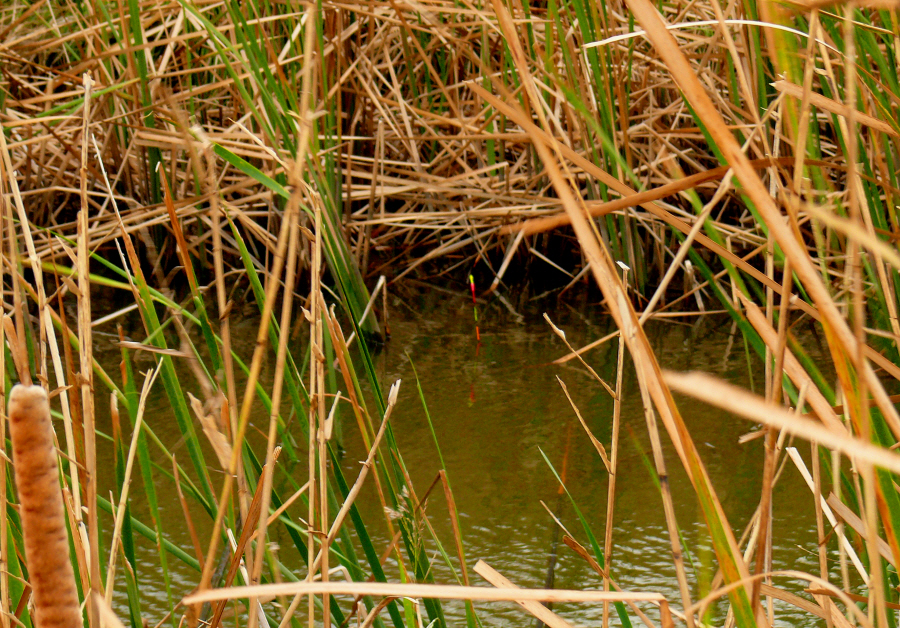 강한 바람속에서도 부들 수초 사이에서는 채비가 들어가면 바로 입질을 하는데 잔씨알의 성화가 심하다.