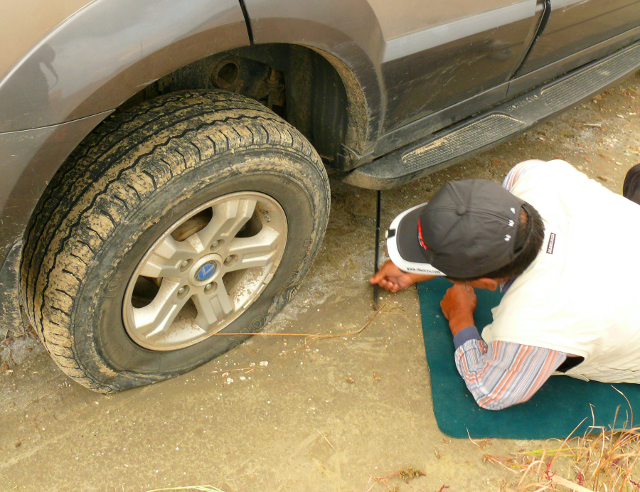 설상가상으로 타이어에 펑크가 나서 죄송스러운 마음이 더 해진다.