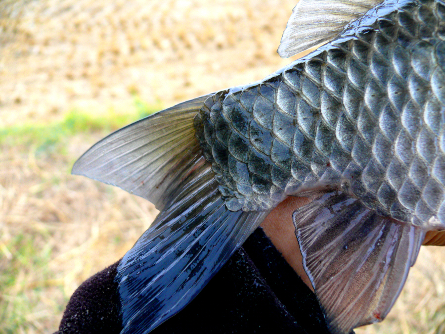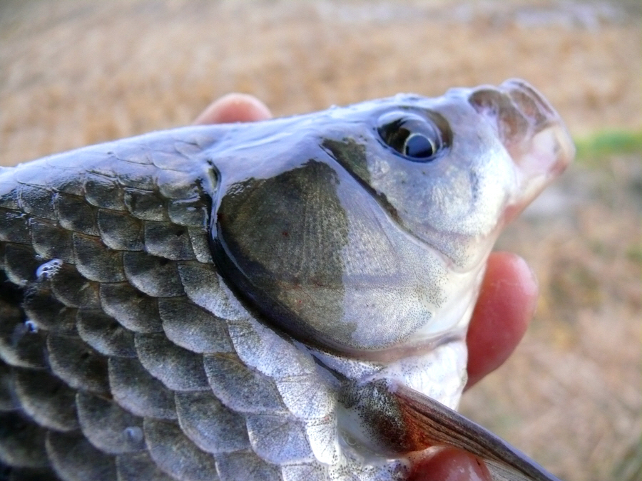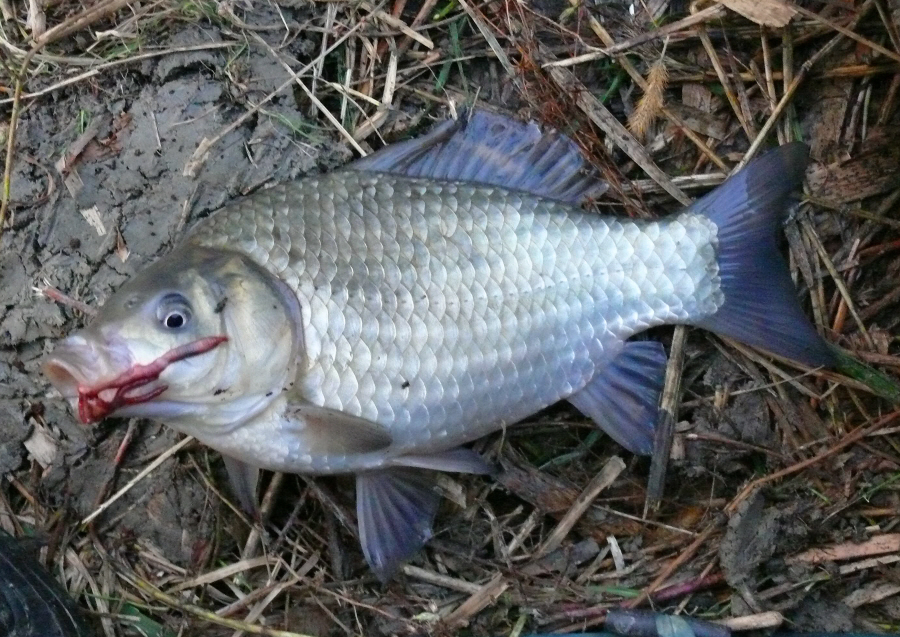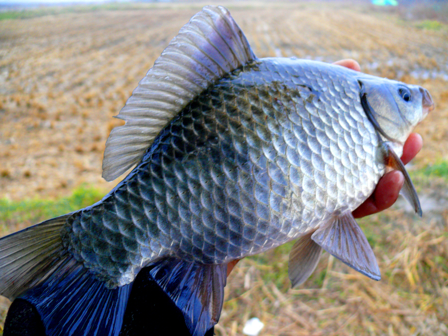 사진을 찌기 위해 옆으로 돌려 놓아 보니 이런 체고는 월척급이 넘는데 꼬리는 짤록한 것이 전형적인 둠벙붕어다.