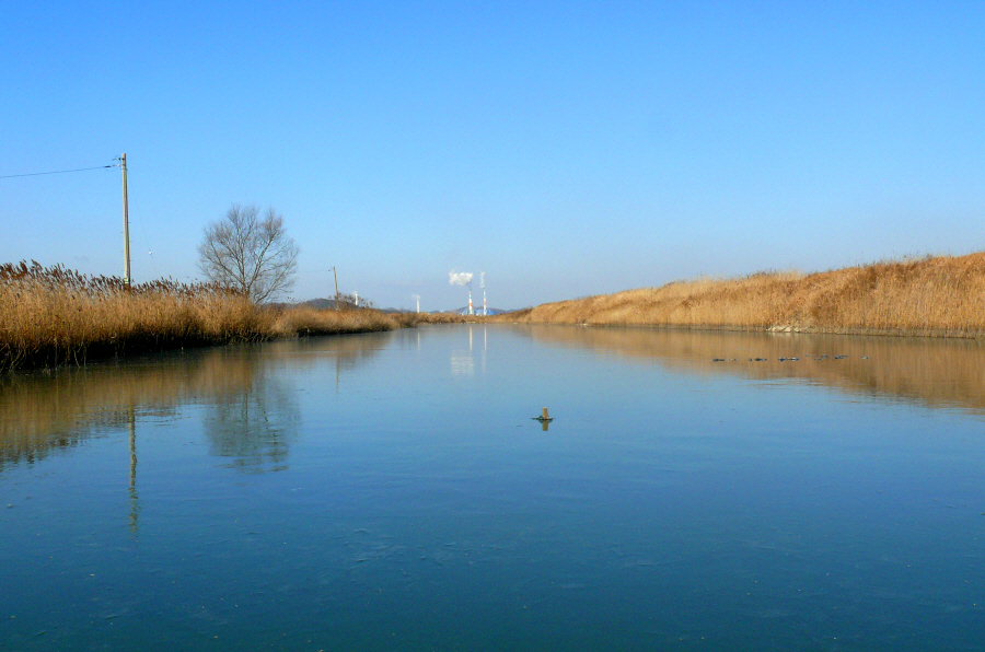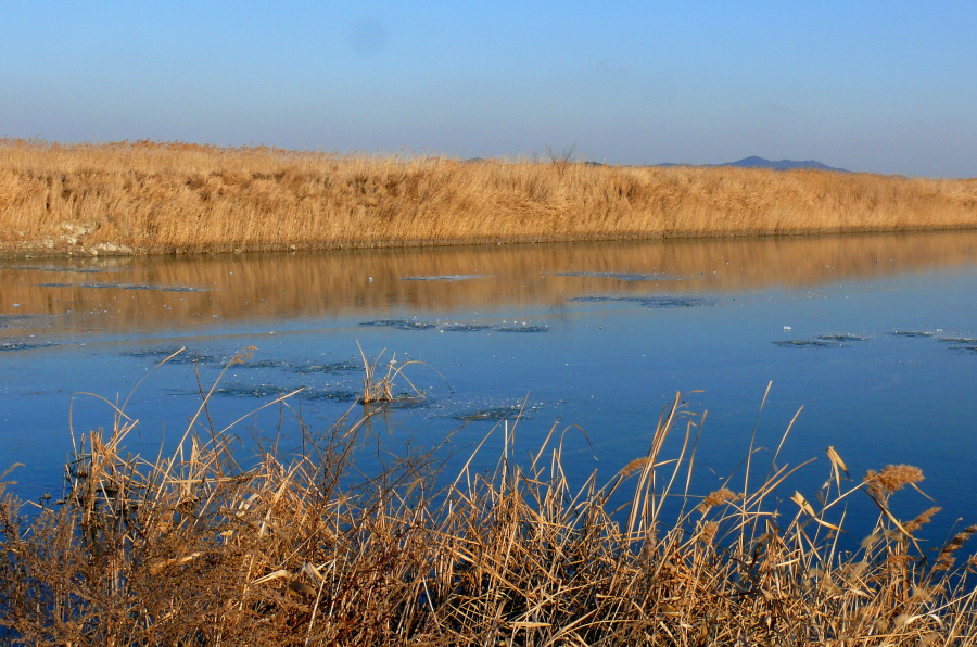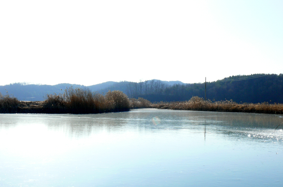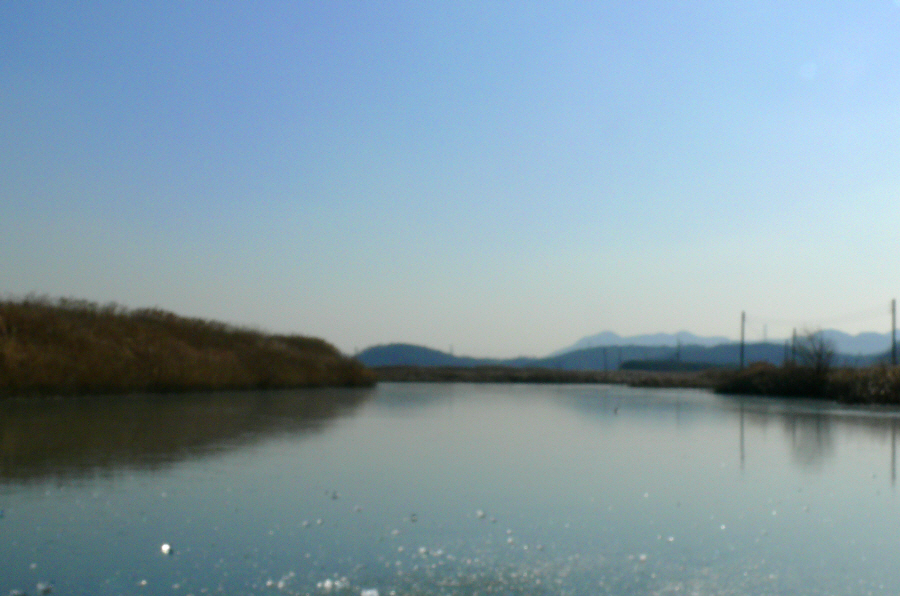 올해 첫 얼음낚시를 시작할 유포리수로 하류권 전경