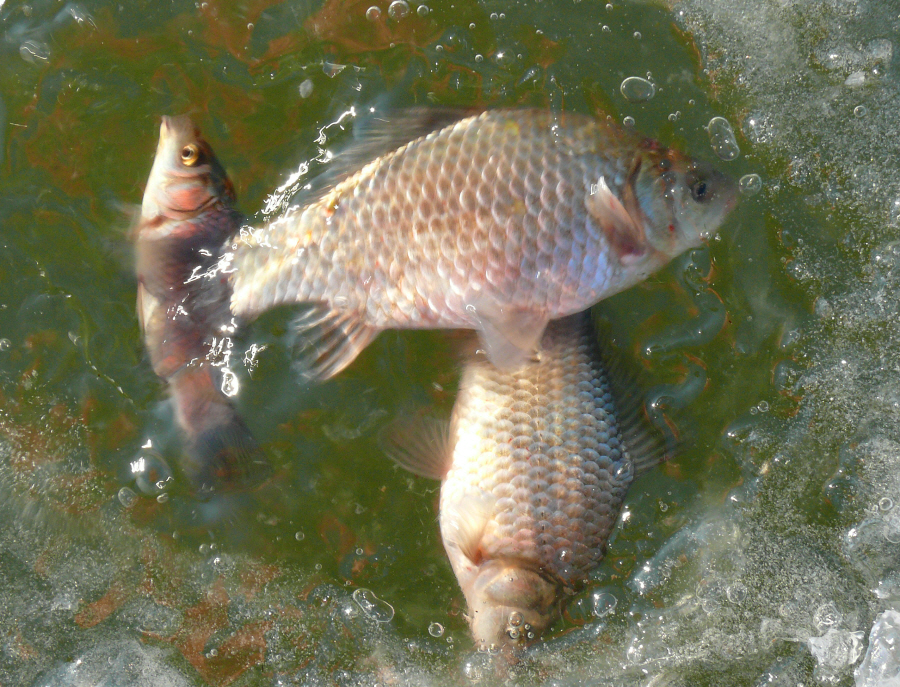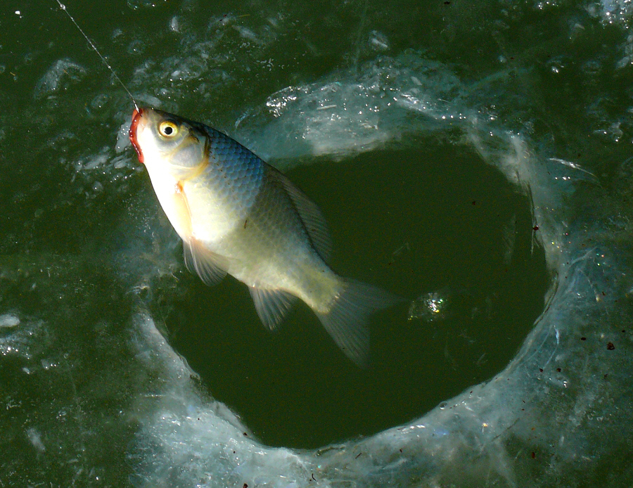 첫 얼음낚시에 나온 붕어의 모습입니다.