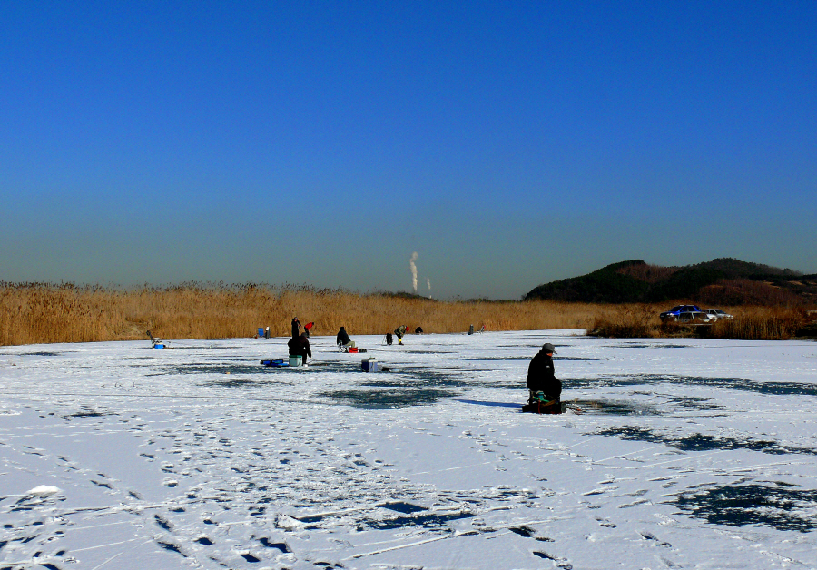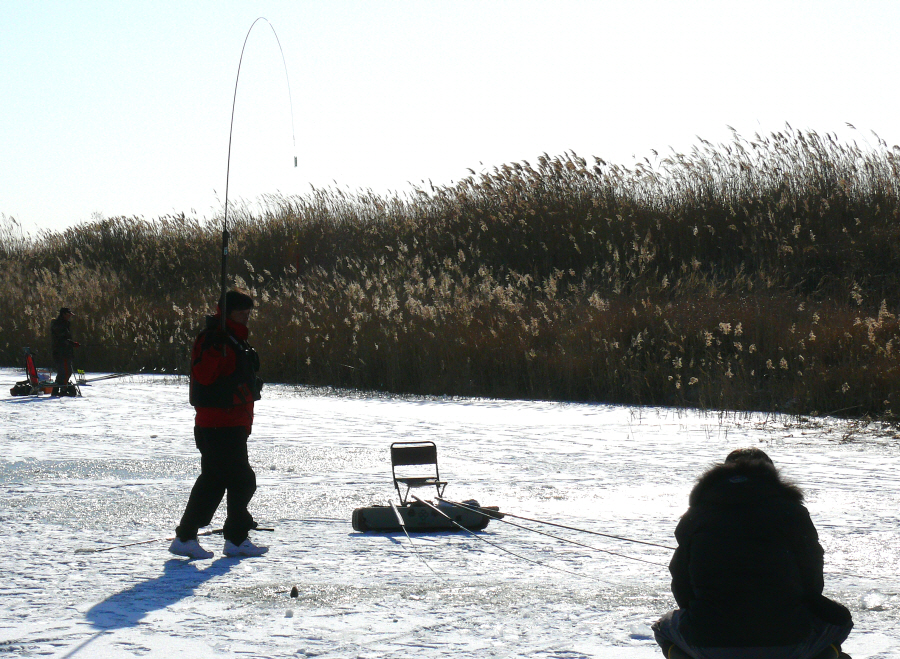 입질이 없으면 포인트 이동은 얼음낚시의 재미입니다.