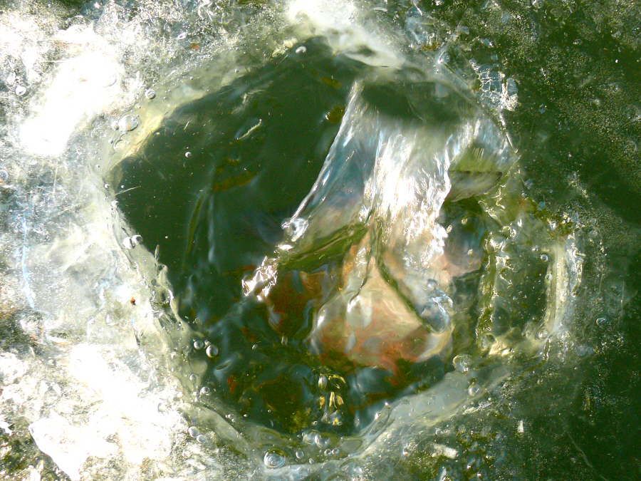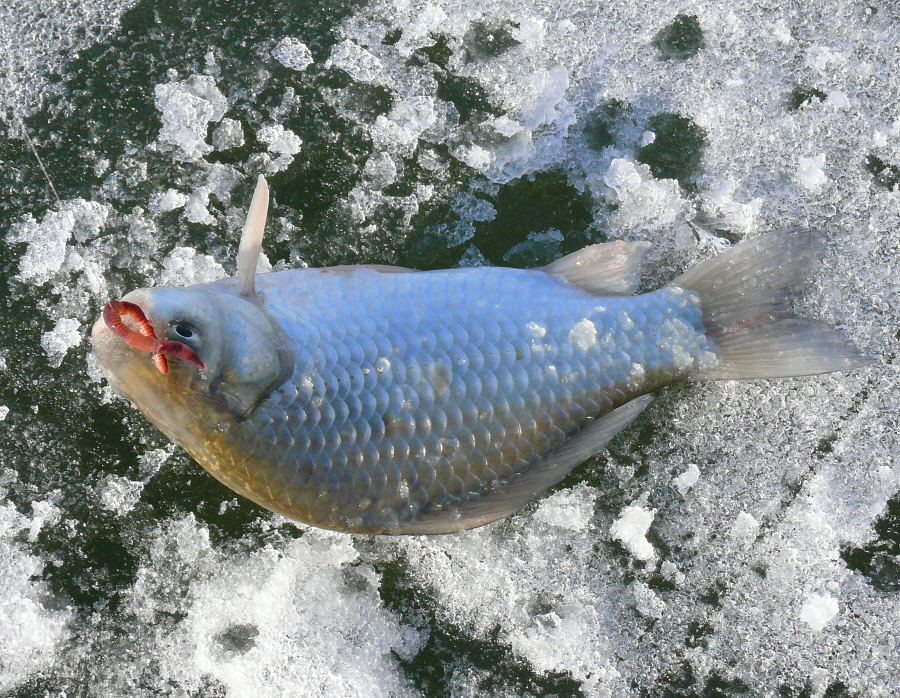 가볍게 챔질을 하니 얼음구멍속에서 힘찬 앙탈을 보여준다.