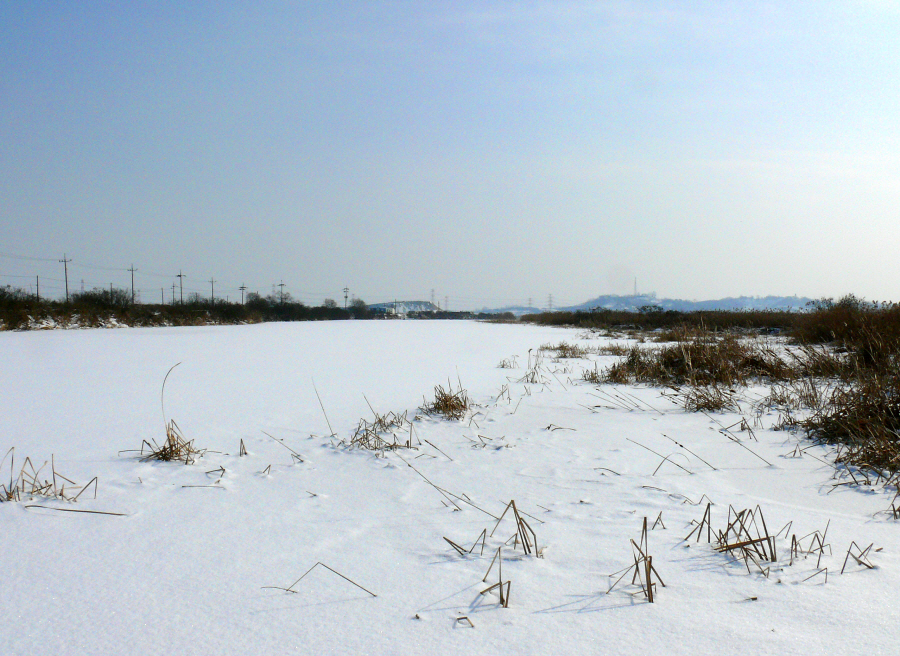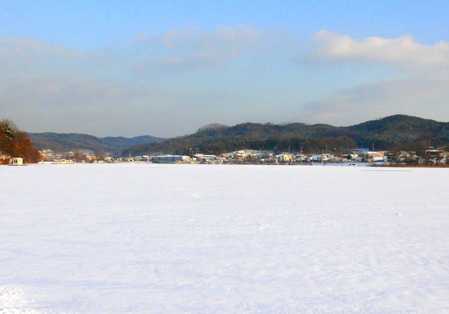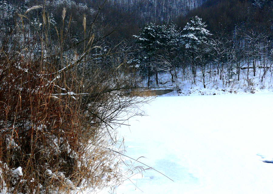 용인의 눈덮힌 소류지입니다.