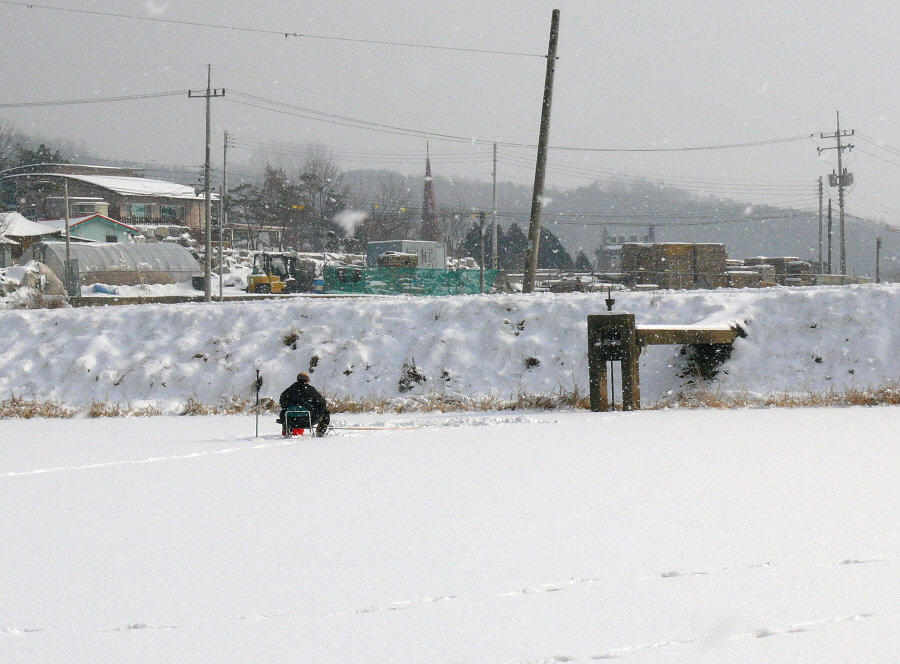 붕어 한마리라도 있는 그림을 만들기 위해서 폭설이 내린 첫날을 제외하고는 매일 출조를 감행했다.