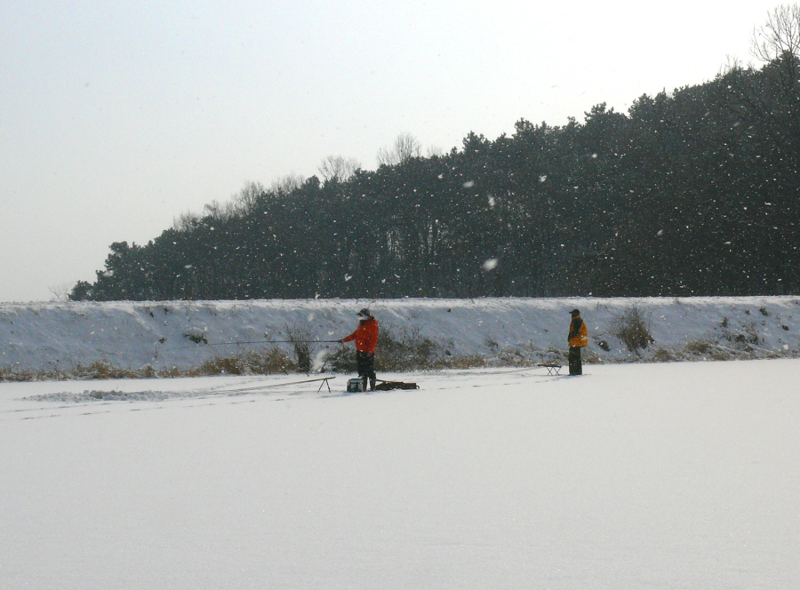 눈이 너무 많이 덮혀 있고 기온도 무서울 정도로 떨어져서 인지 붕어의 입질은 전혀 받아 볼 수가 없었다.