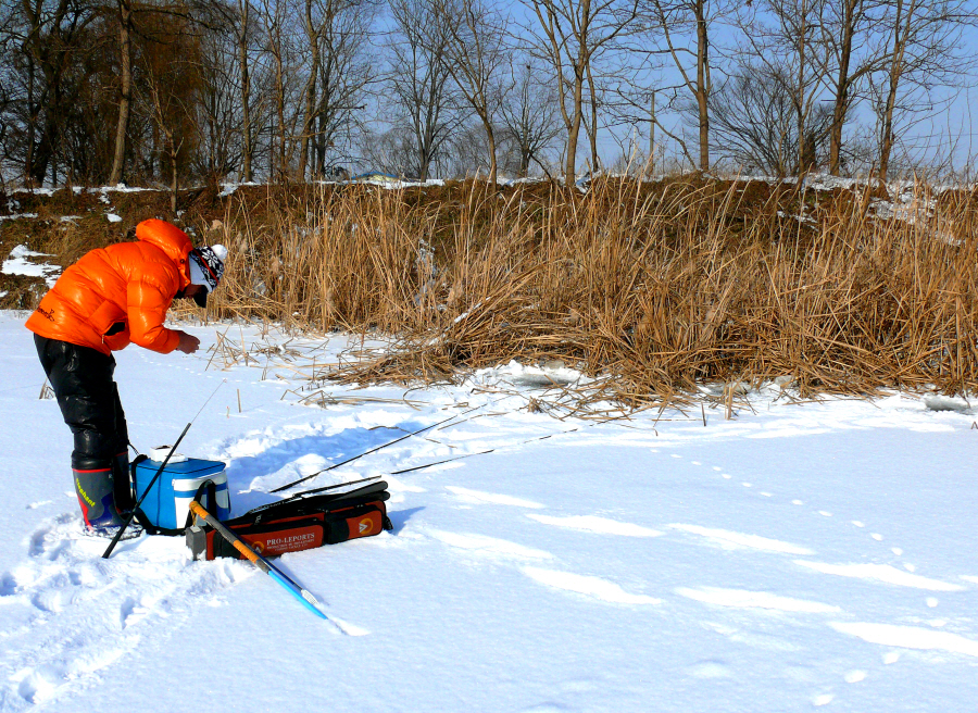 원래 눈이 덮히면 조황이 좋지 않다는것이 익히 알려진 사실이지만 그래도 혹시나 하는 마음으로 개체수가 물낚시때 많이 있던 곳만 찾아 다녔다.