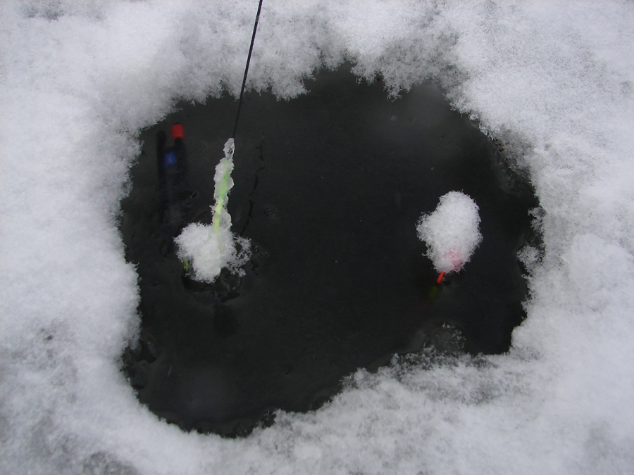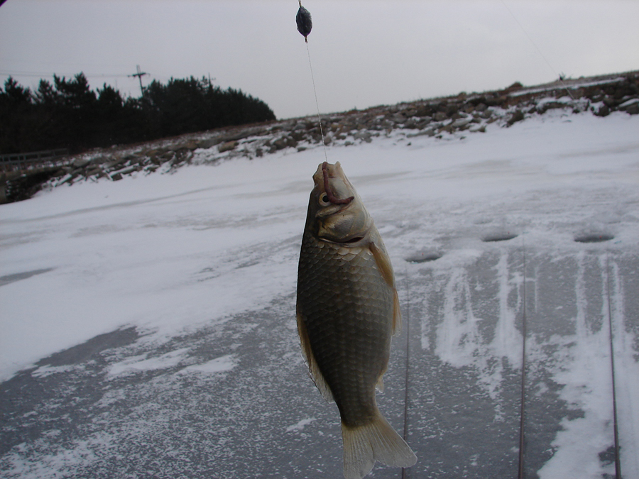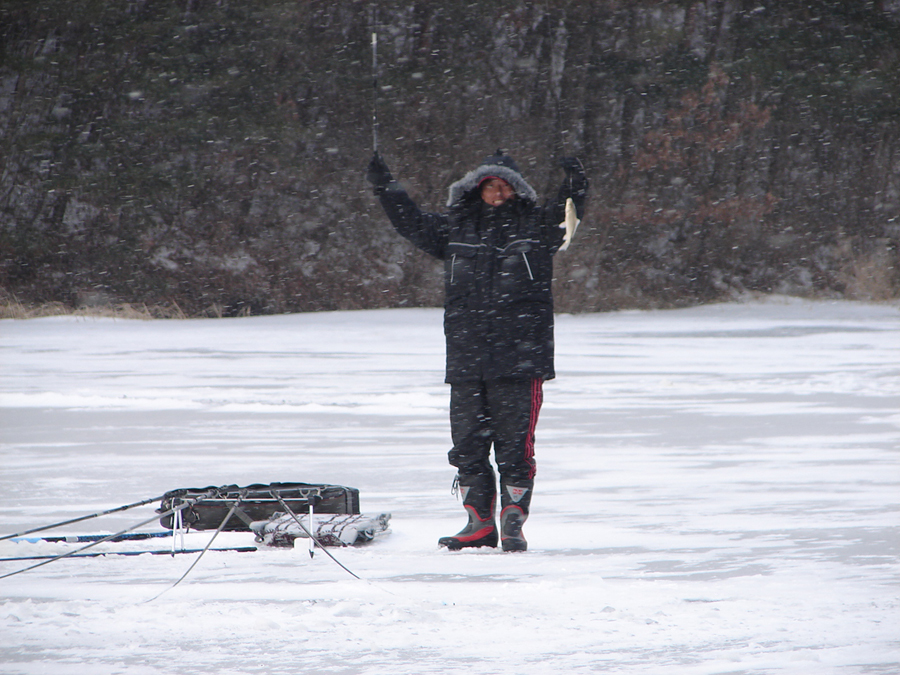 간신히 채비를 하나 드리우면 바로 메꿔지는 얼음구멍.
