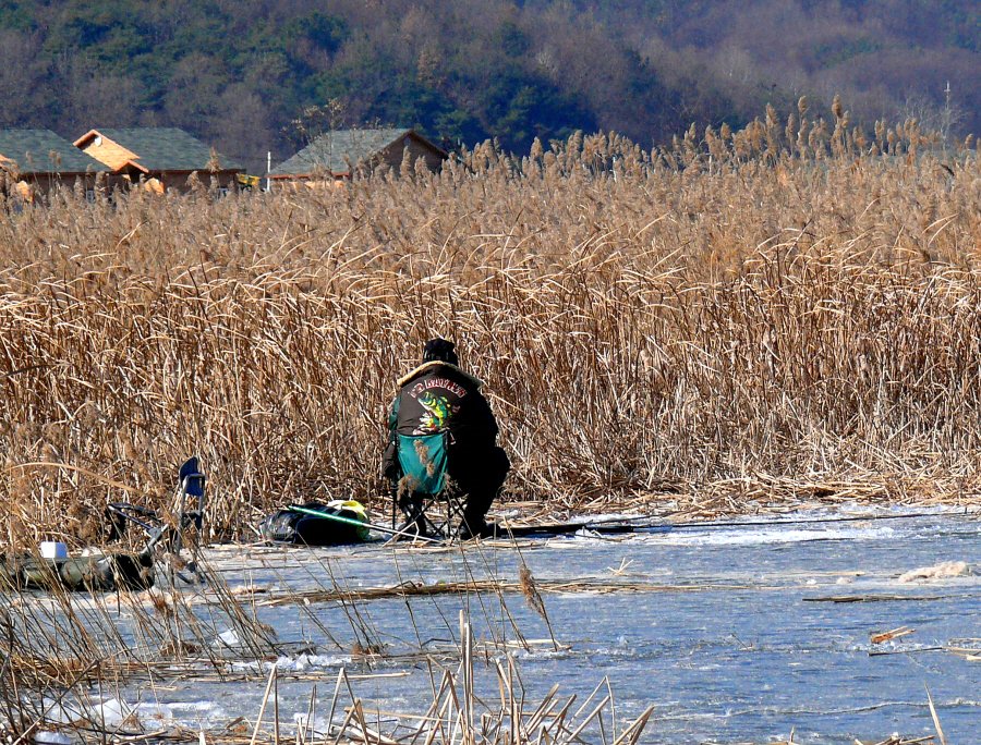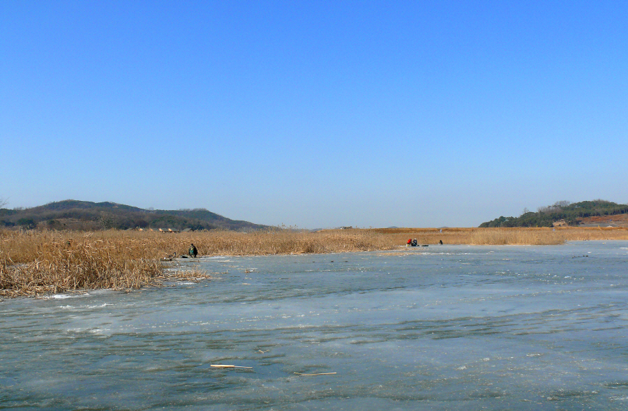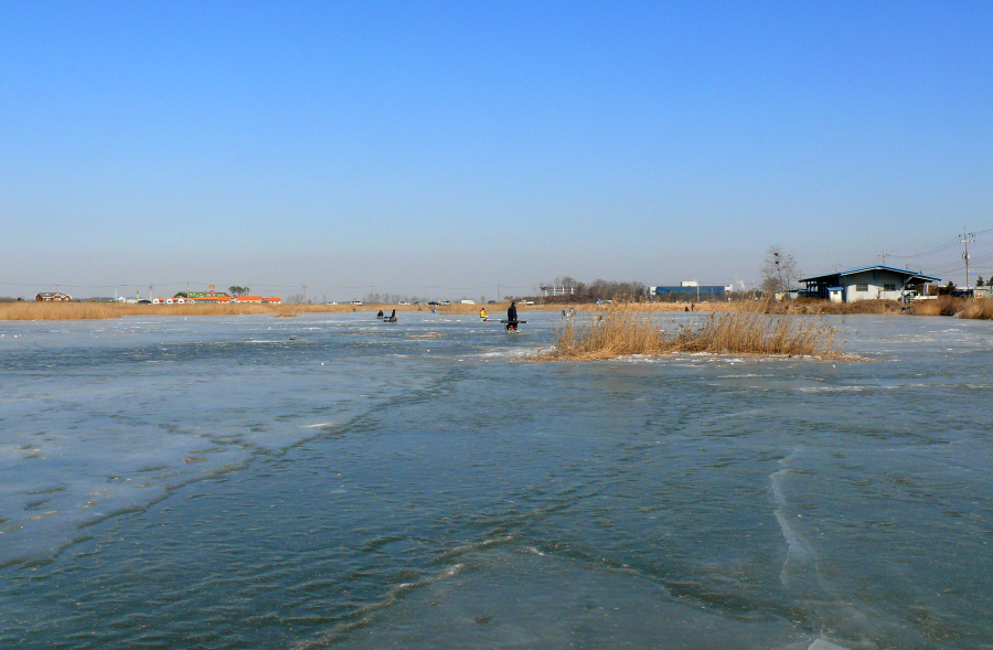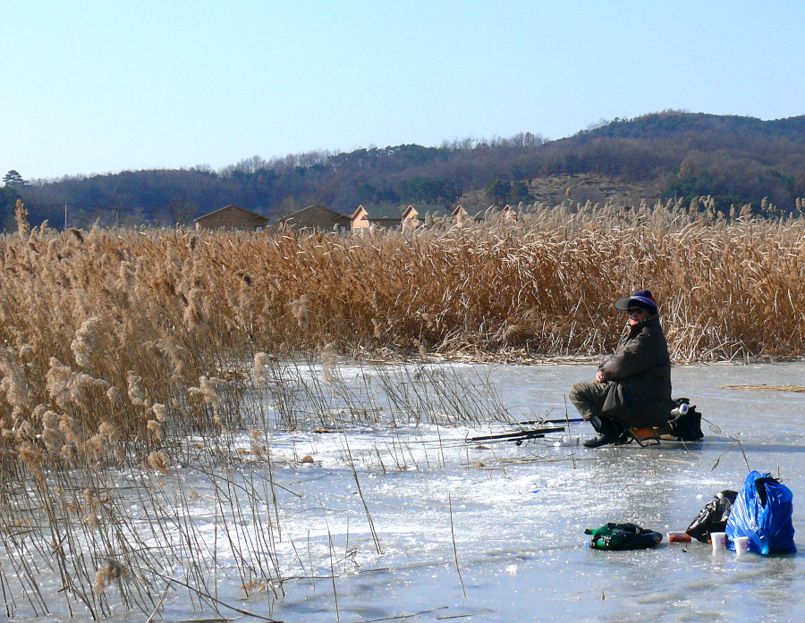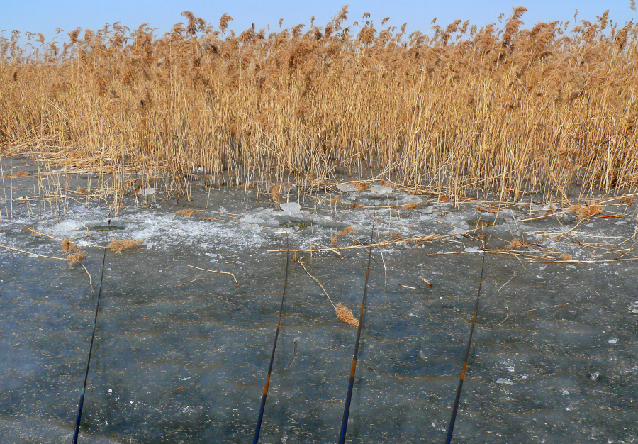 필자도 갈대수초와 맨바닥이 만나는곳이 구멍 4개를 뚫고 채비를 드리웠는데