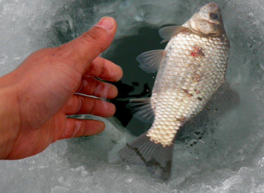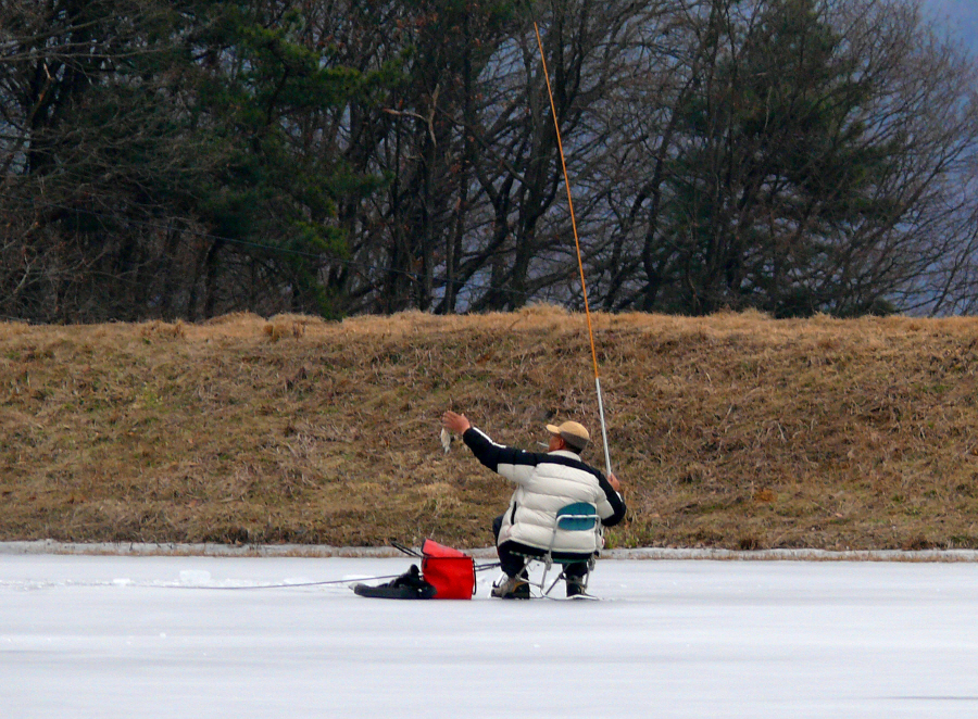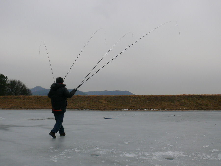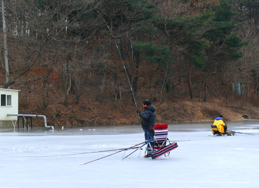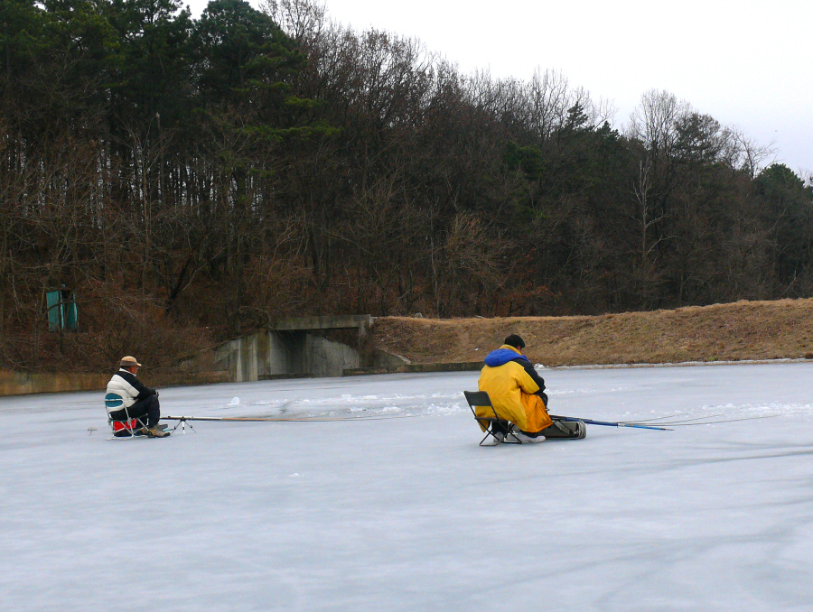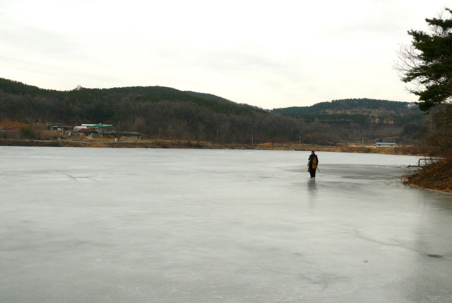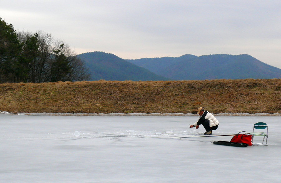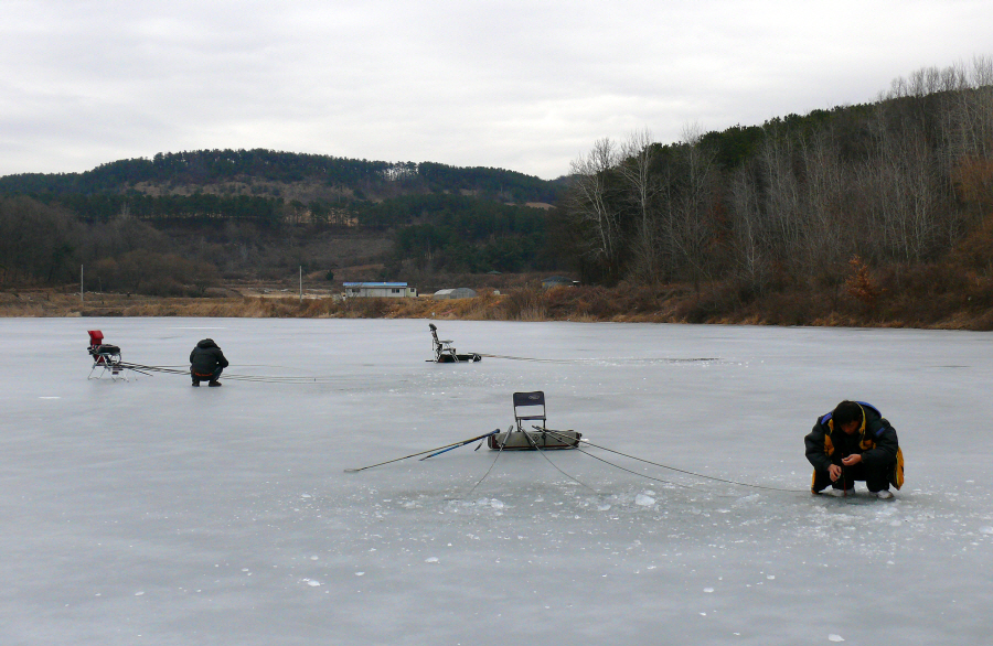 흐린날 붕어 얼굴보기가 그리 쉽지 않은 것이 얼음낚시의 특징이기에 구멍을 뚫고 채비를 드리우면서도 오늘도 틀렸구나 하는 생각이 들었다.