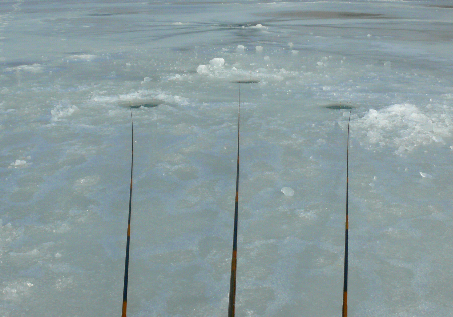 아마 올해 얼음낚시에서 가장 힘들게 세구멍을 뚫은 것 같다.