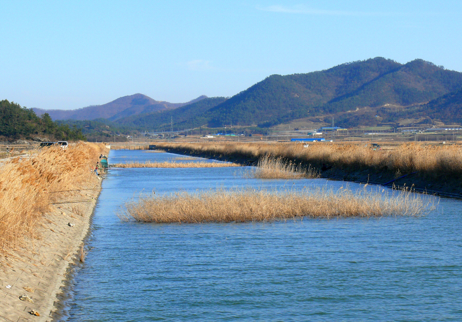 군내호 주변의 수로에는 몇몇 꾼들이 모여서 낚시를 즐기고 있어고, 군내호의 포인트에도 꾼들이 자리를 잡고 있었다.