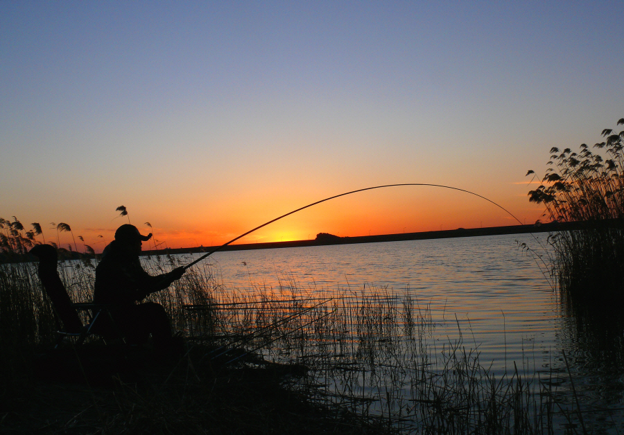 해가 지기 전에 붕어 얼굴을 봅니다.