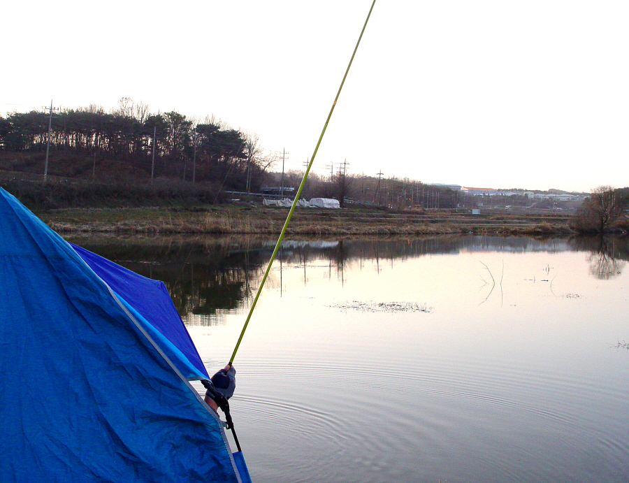 그런 와중에도 상류권에서 붕어들의 움직임이 포착되었고, 30분 정도 밑밥질을 하고 나니 첫 입질이 들어오기 시작한다.