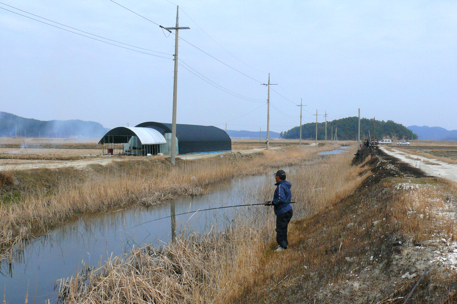 해 떨어지기 전에 붕어 사진을 찍기 위해서 다시 이동을 해서 이원면 샛수로에 도착.