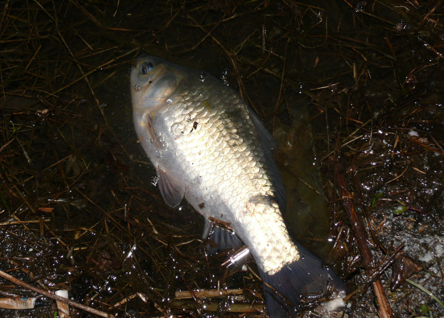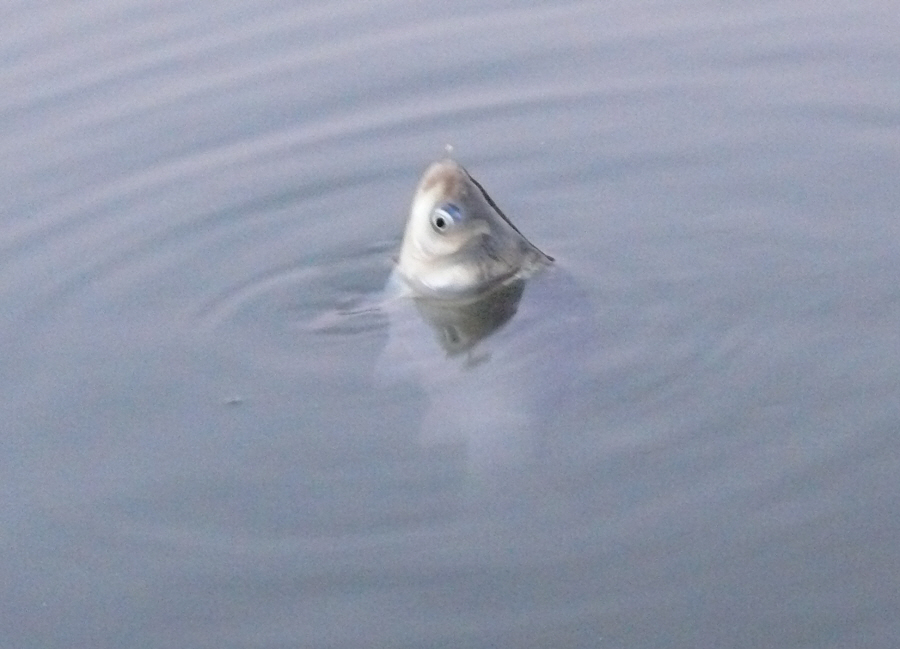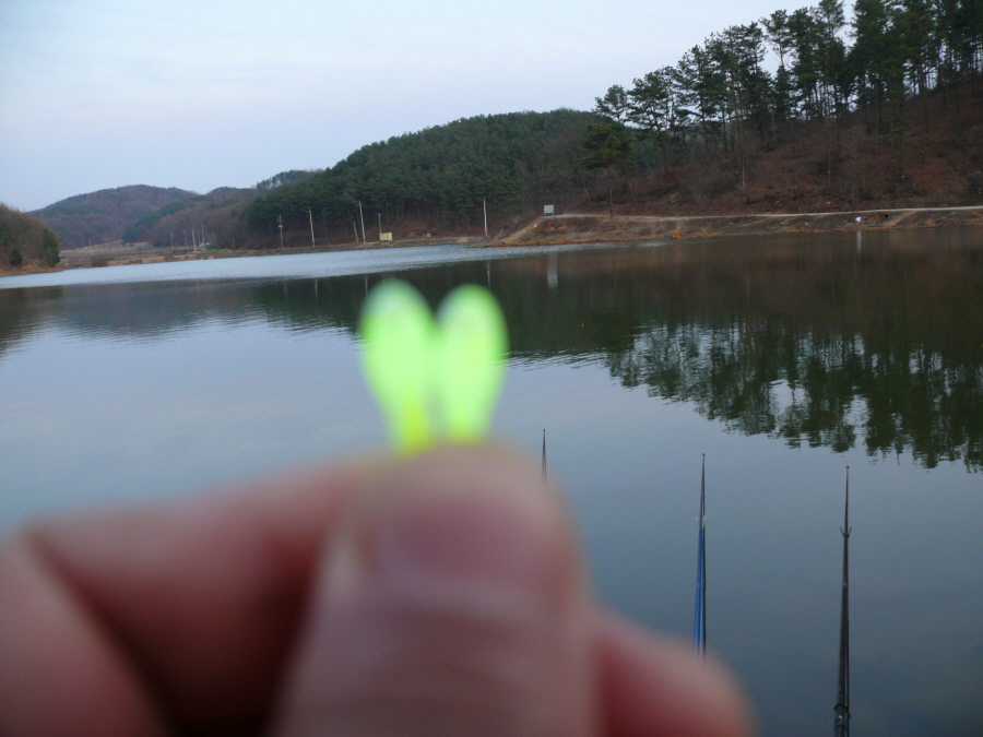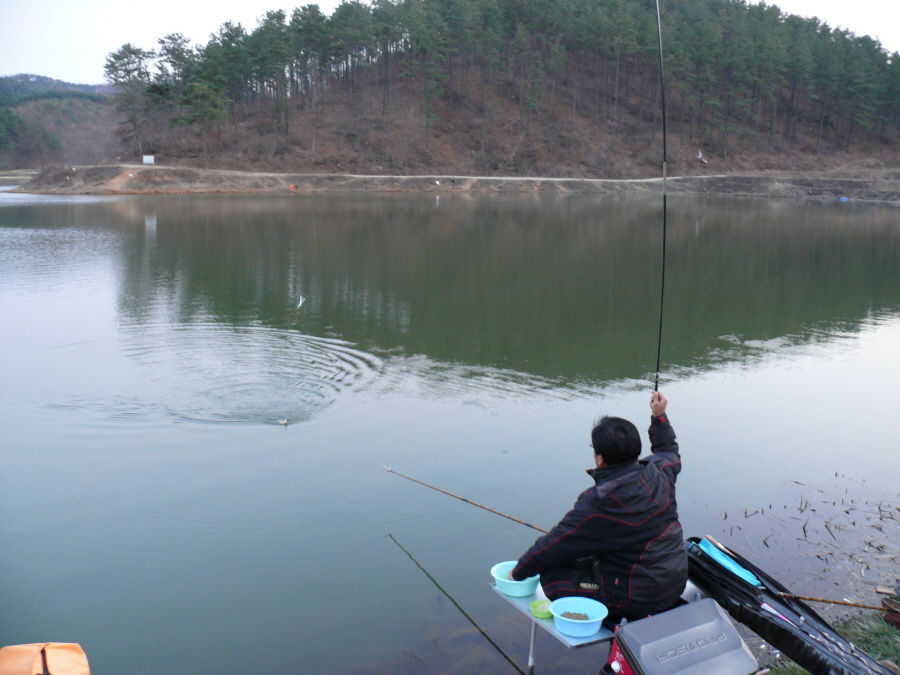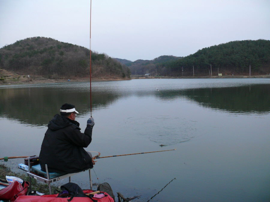 그러나 해가 질 무렵부터 제방권 내림낚시에서 간간히 떡붕어가 비추기 시작한다.