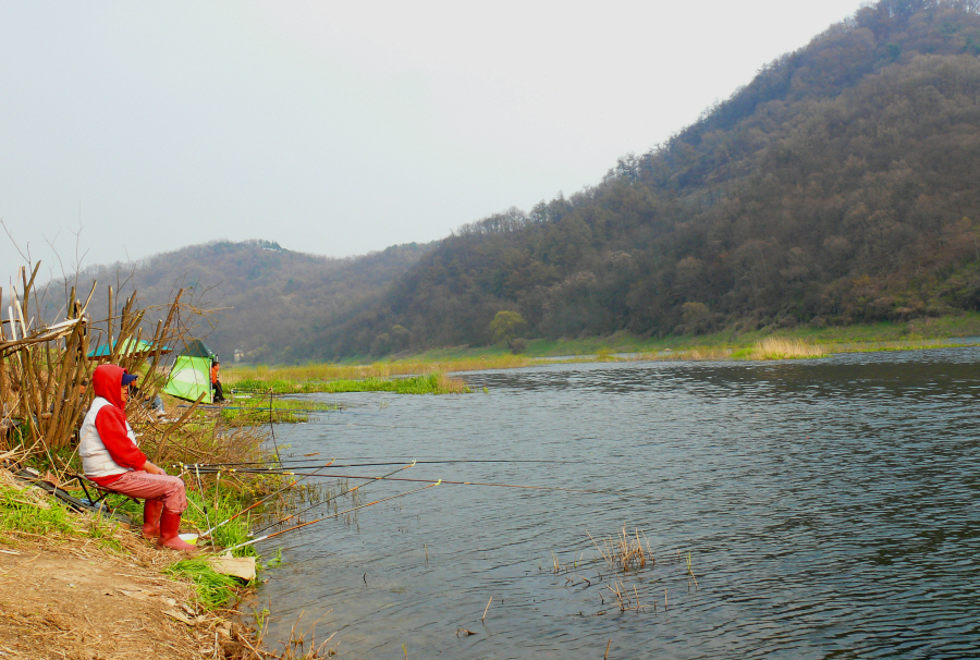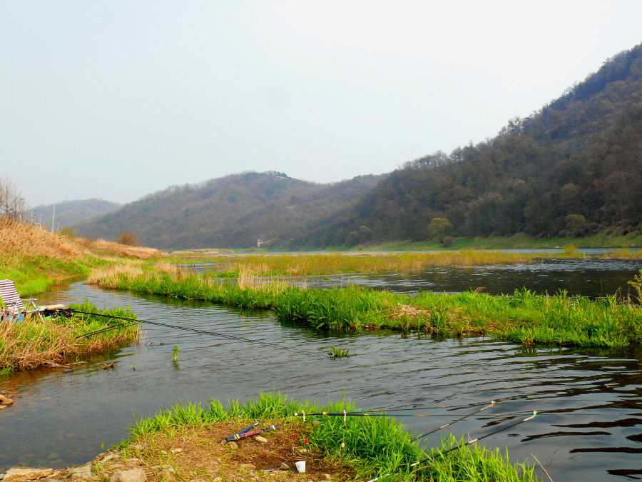 귀로 들은 정보에 의하면 붕어가 나오는 자리는 두세자리 정도라 하기에 그런 곳이 어디 있을까 하고 찾아간 금강 지류권의 어느곳.
