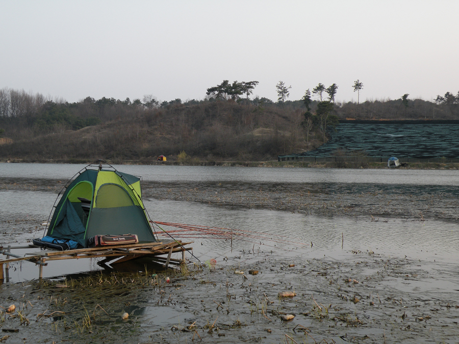 그렇게 2박 3일동안 바람이 불고 진눈깨비가 날리더니 둘쨋날은 1m 50cm정도 배수도 이루어지고 낚시다운 낚시를 할 수가 없었다.