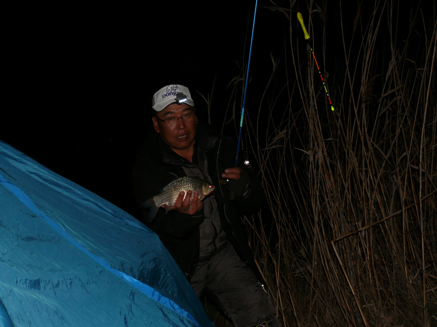 갈대 수초 앞에 자리를 잡은 윤교수님은 월척급으로 한 수 걸어 내었고, 밤에도 한 수 걸어 내었다.