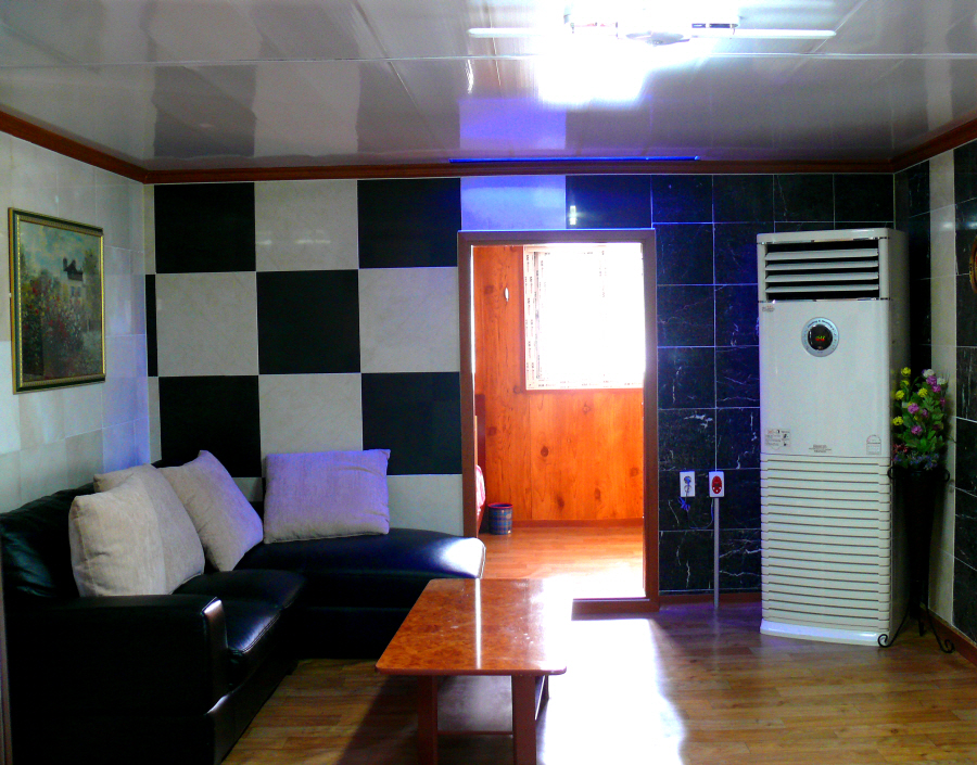30여평의 공간에 방이 4개 응접실이 1개 난방시설, 취사시설, 유성방송 시청, 인터넷설치, 샤워시설, 수세식 화장실, 에어콘, 냉장고, 발코니