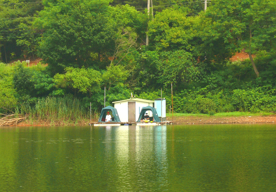 상류 우측편 포인트에 위치한 수상좌대 전경