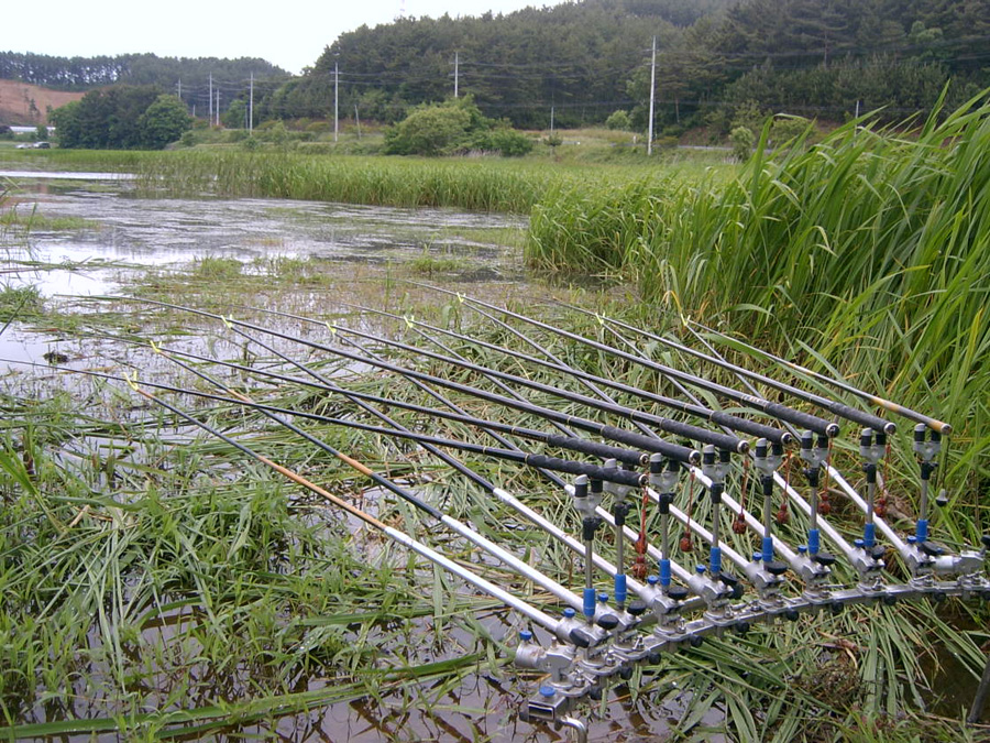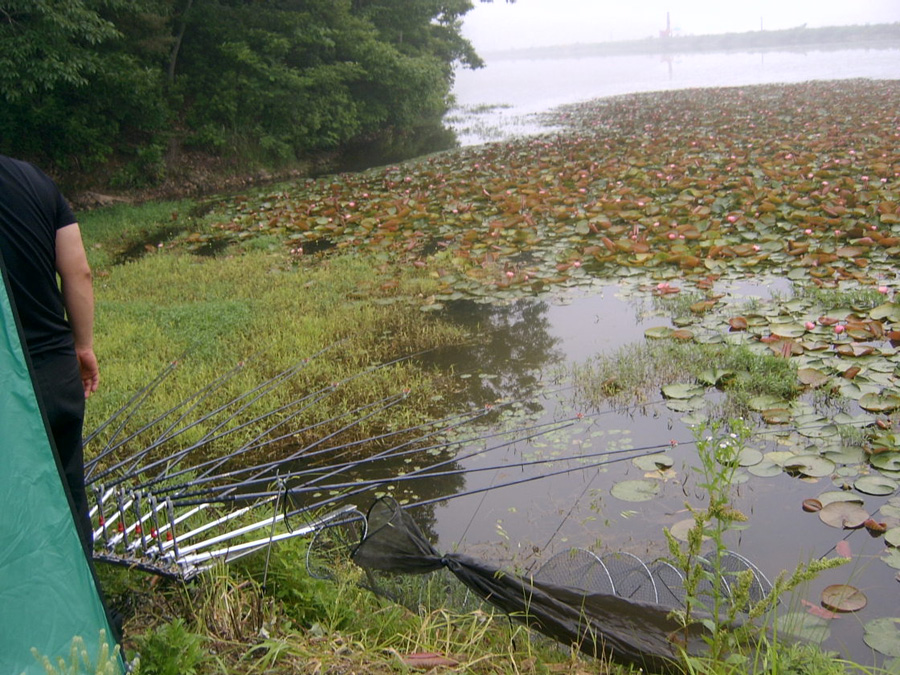 상류쪽을 보니 낚시한 흔적이 없어 오름수위(??)를 기대하며 수초작업을 하고 닊싯대를 편성하였다.
