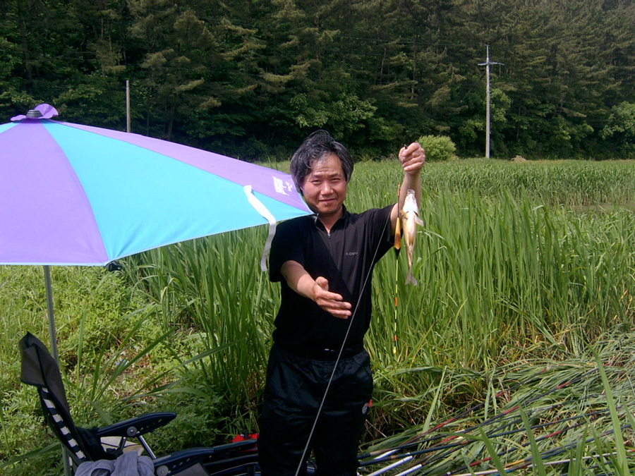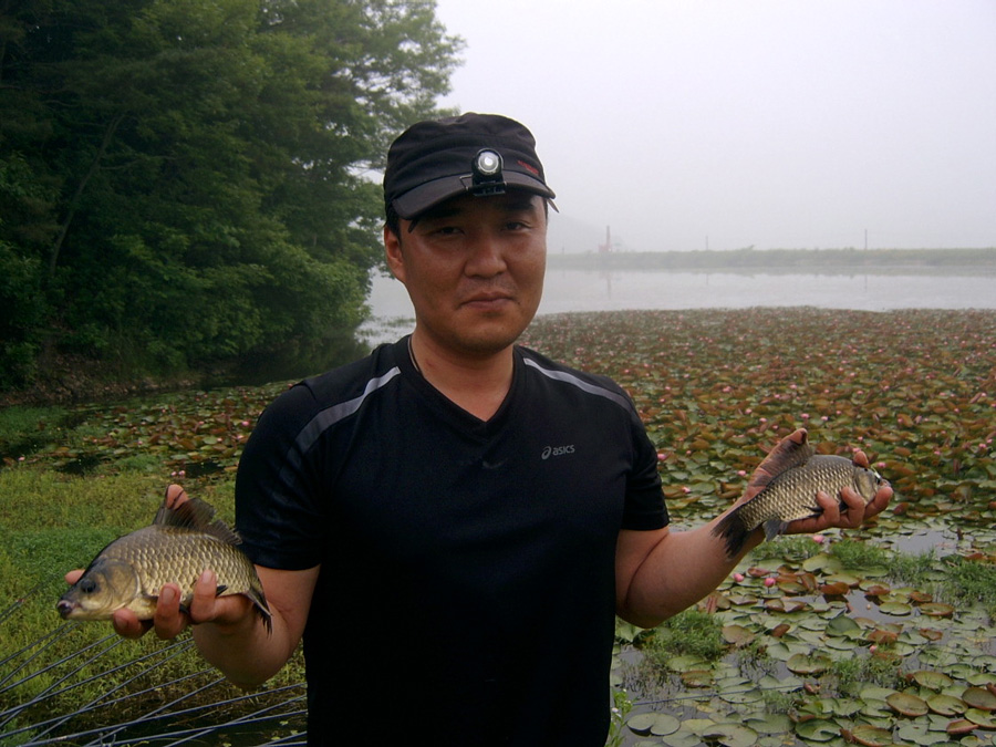 이를 본 dnjfcjr님이 옥수수를 달아보았는데 잠시후 챔질소리와 함께 준척급 붕어를 낚아 내신다.