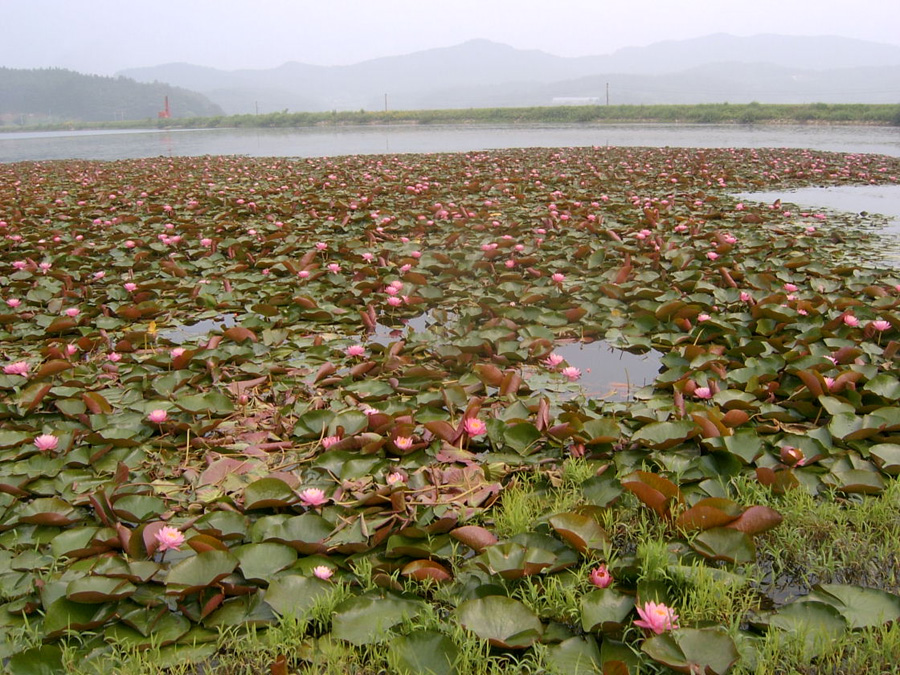 오락가락하는 빗속에서 dnjfcjr님과 태안 닷개지로 이동하여 둘러보니 전역이 수초로 덮여있고,