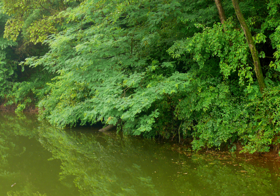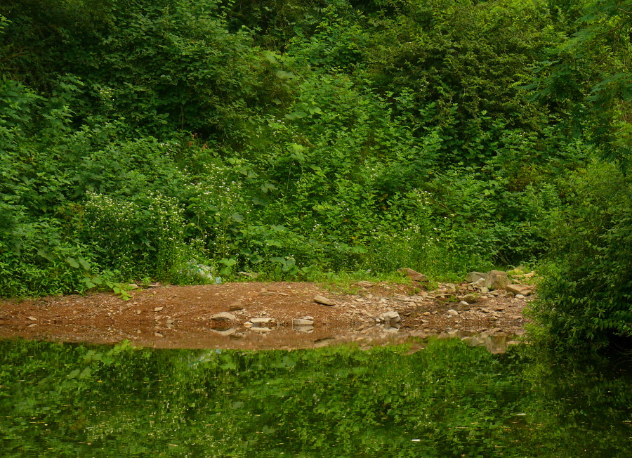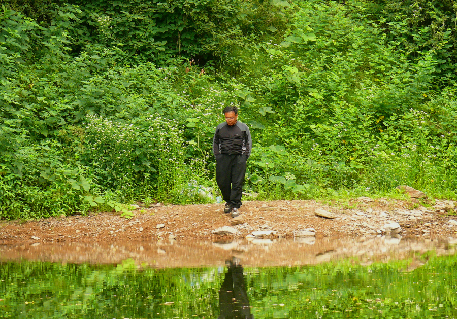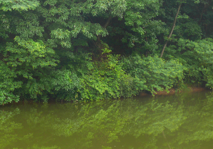 밤새 내린 비로 옹담샘의 수위는 10센티 정도 올라 갔으며, 울창한 나무들은 빗방울을 조롱조롱 달아 메고서 빛나기 시작한다.