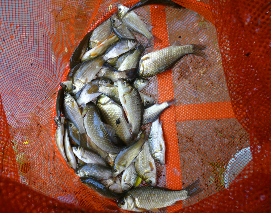 필자는 슬림찌 채비로 새우낚시를 시도하니 마찬가지로 4 - 5치급 붕어가 찌를 사정없이 끌고 가거나 올려준다.