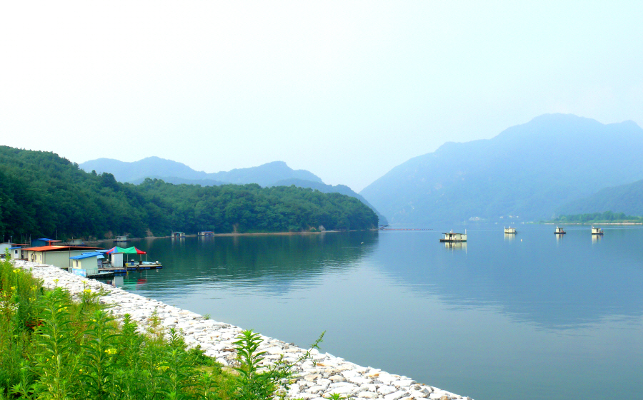 의암댐의 새로운 명소로 부상하는 삼천낚시터 전경