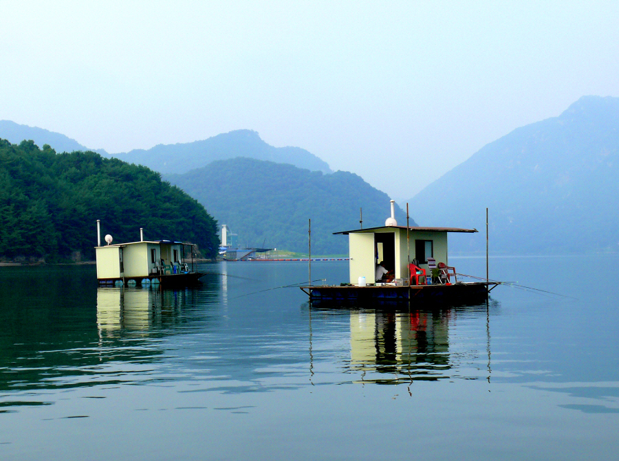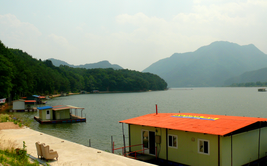 수상에서 에어콘 켜고 시원한 댐 바람 맞으며 즐기는 낚시를 할 수 있는 삼천낚시터.