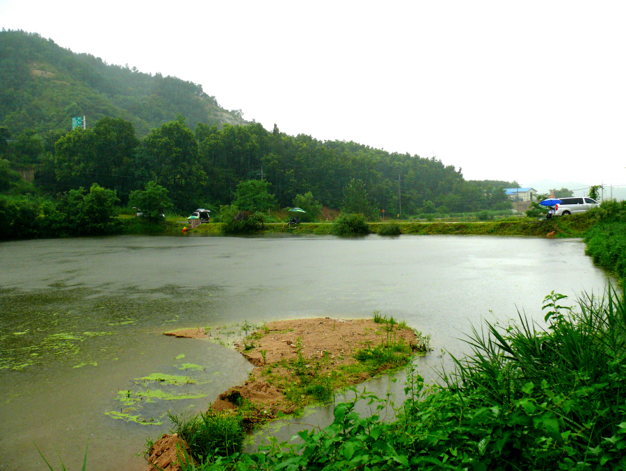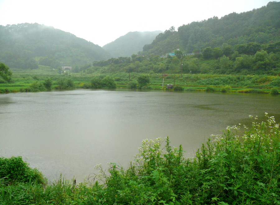 비는 주룩주룩 내리고, 아담한 소류지는 별로 낚시한 흔적도 그리 많지 않아 보인다.