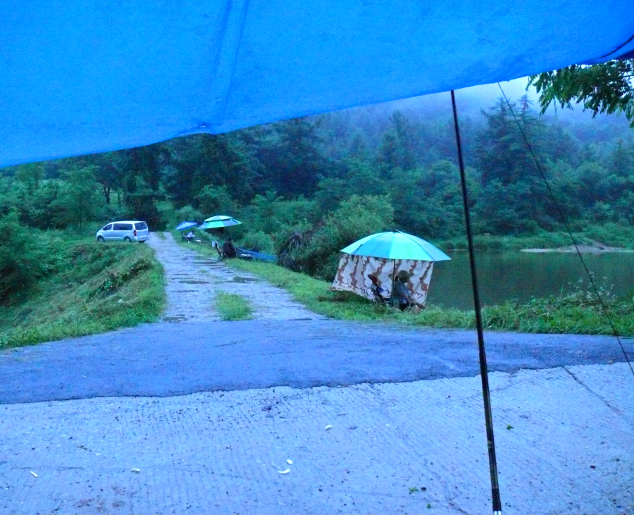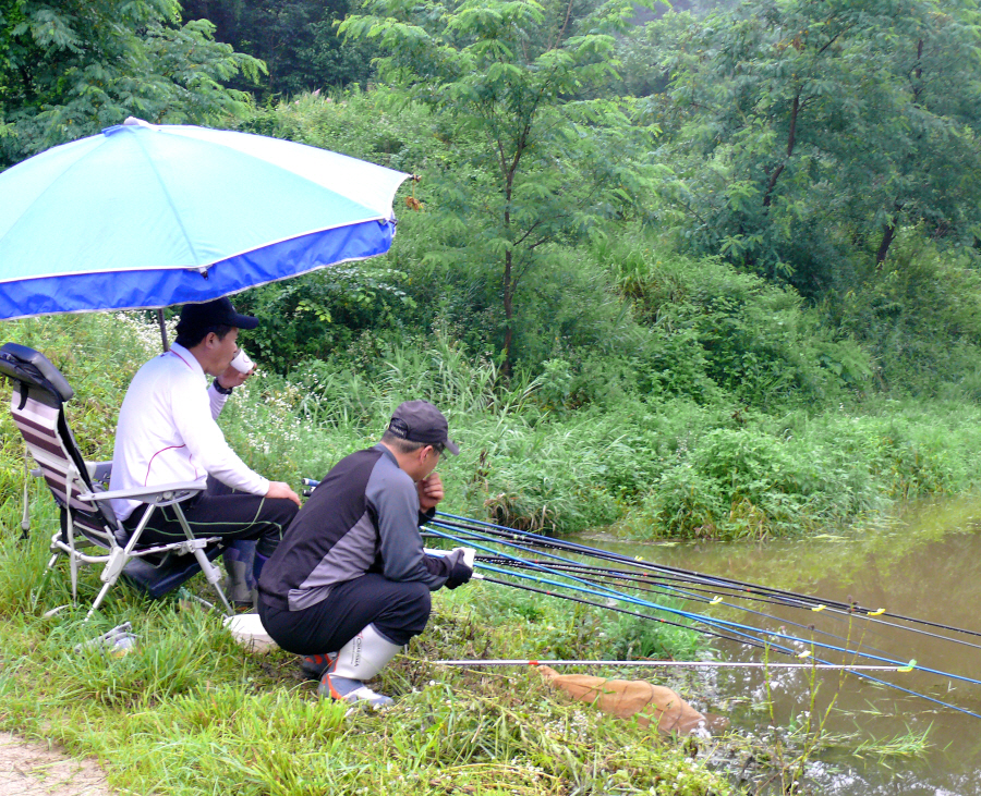 계속 비가 온다는 소리에 철수를 하려 하는데 지역 낚시꾼으로 보이는 두사람이 들어 오더니 상류권 포인트에 자리를 잡는다.