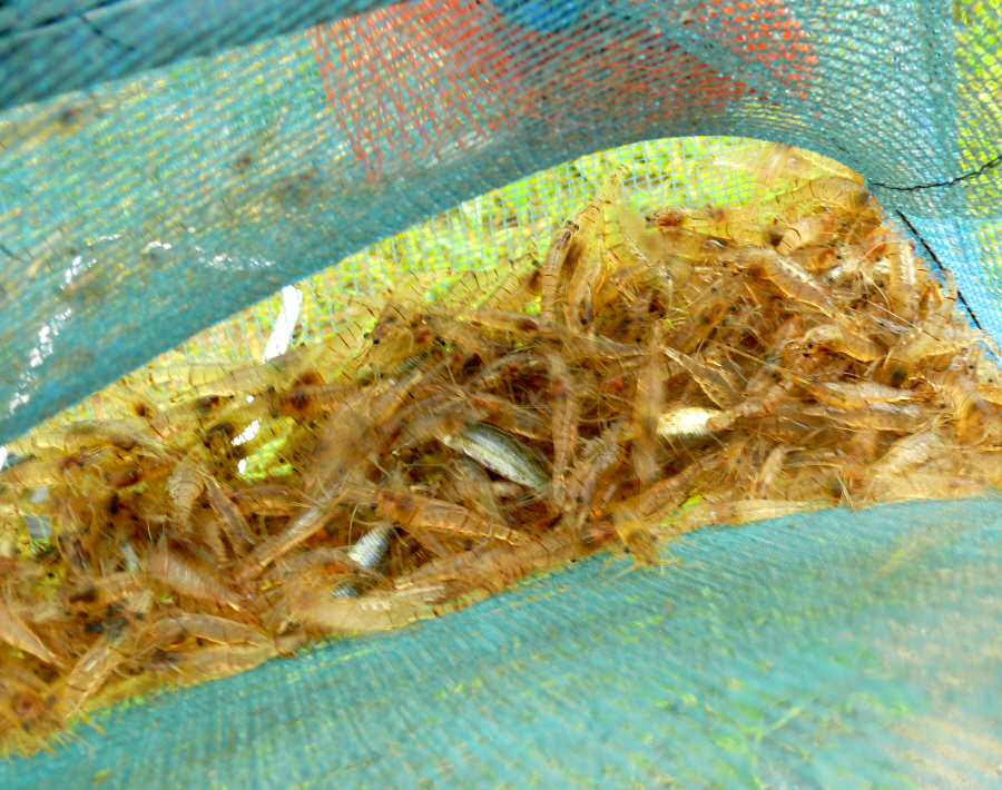 밤에 넣어 놓은 새우망에는 새우가 바글바글 합니다.