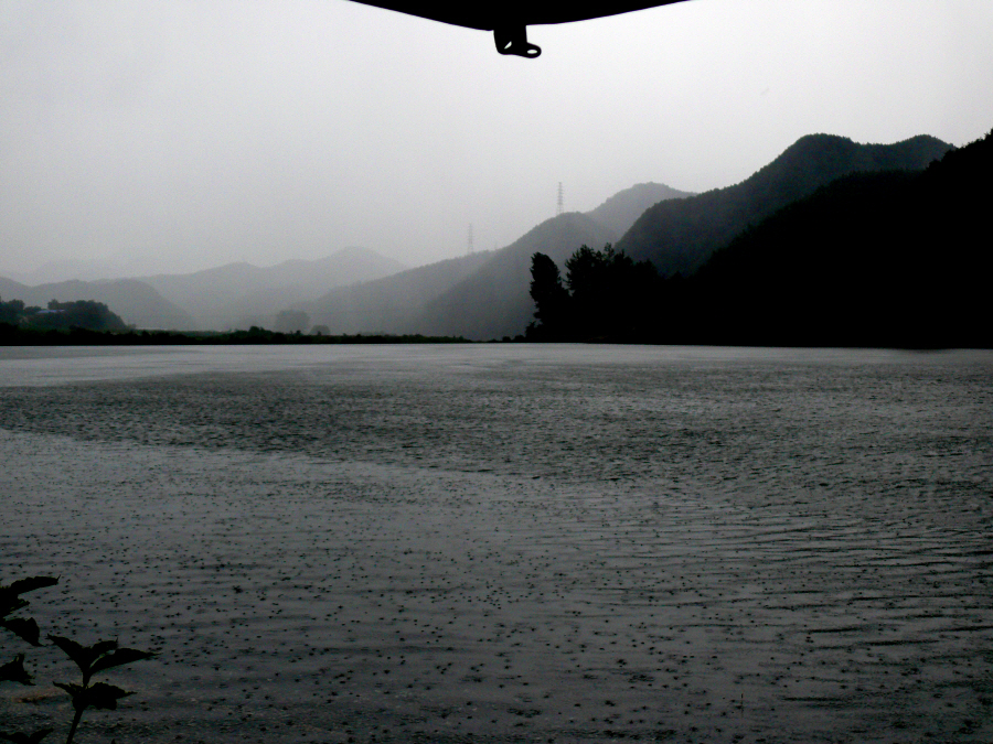 앞에 보이는 먼산에서 먹구름이 비를 뿌리면서 취재팀 쪽으로 오는 느낌이다.