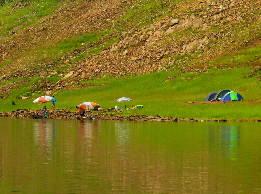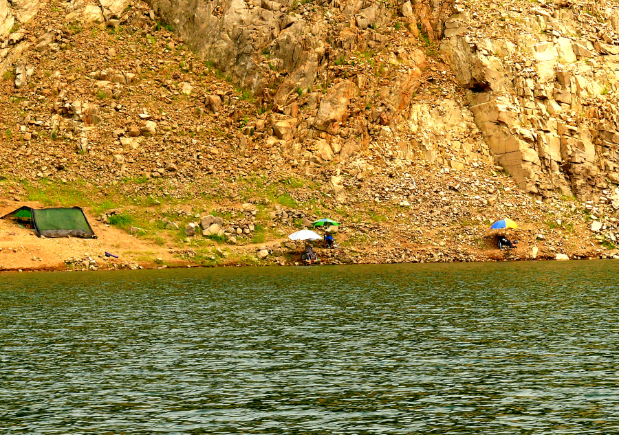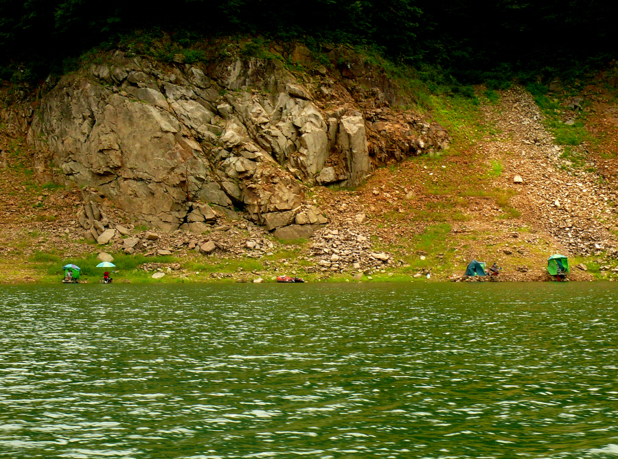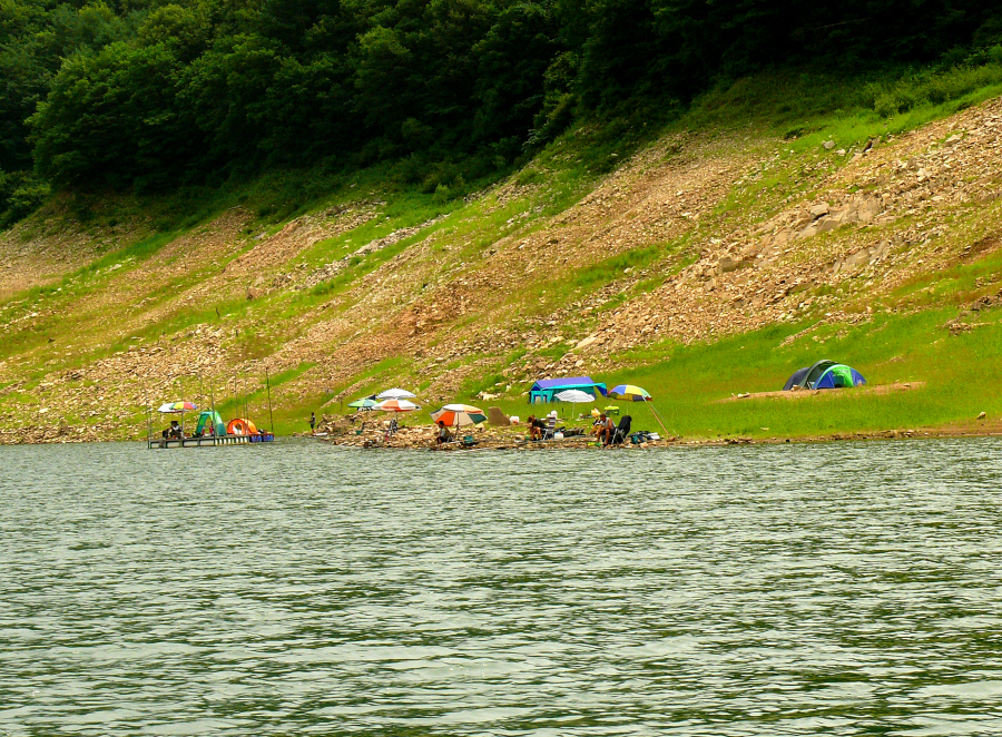 상류 건너편 자리에서 휴가 온 조사들이 자리를 잡았습니다.