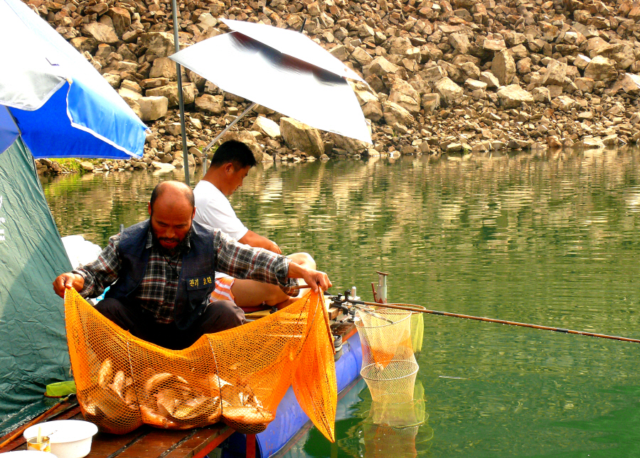 낮에 중층낚시를 하는 좌대에서는 쉴새없이 입질이 이어졌으며,