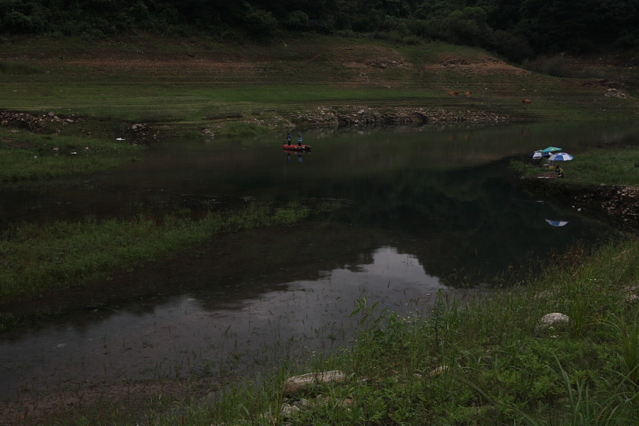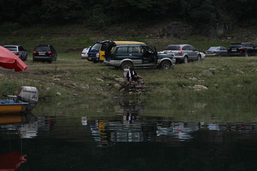 낚시터 초입에는 베스꾼이 보트를 띄워 낚시를 하고