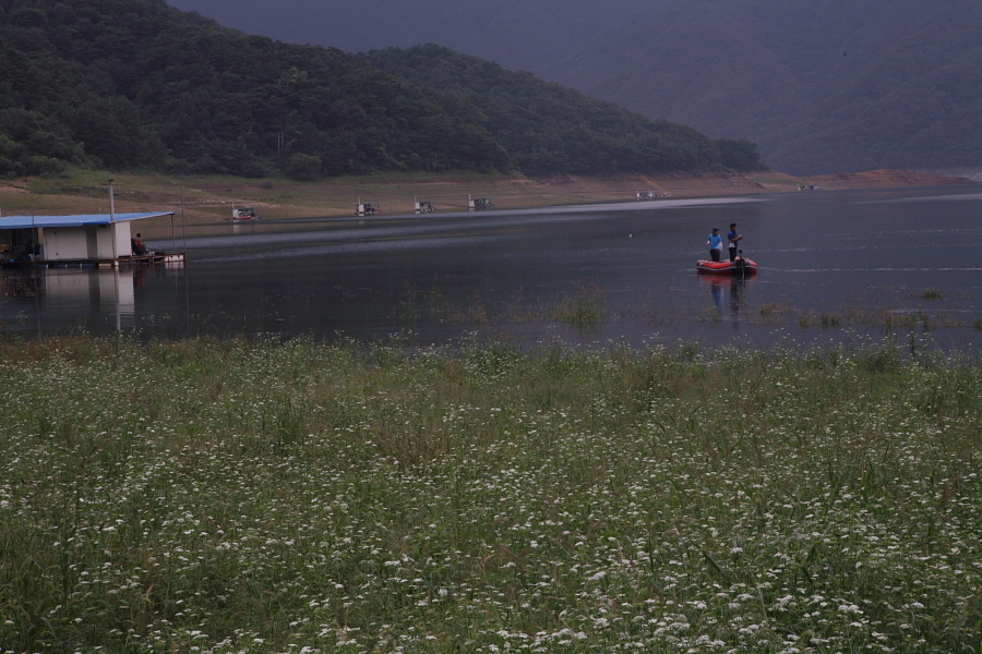 북한강계 댐낚시를 좋아하는 사람들끼리 단체로 가족동반 피서를 떠났습니다.
