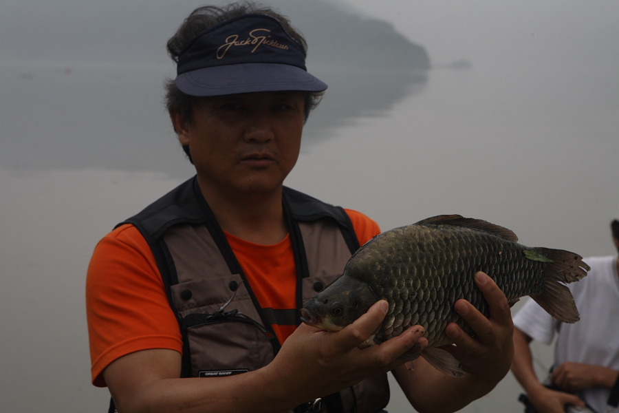다른 분이 잡은 붕어를 들고선 대리만족하고 있습니다.