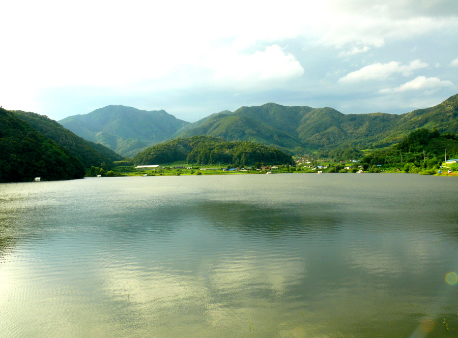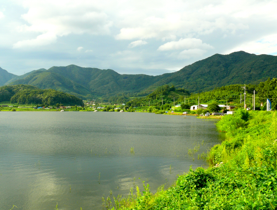 지금 만수위로 물이 넘고 있는 노은지입니다.