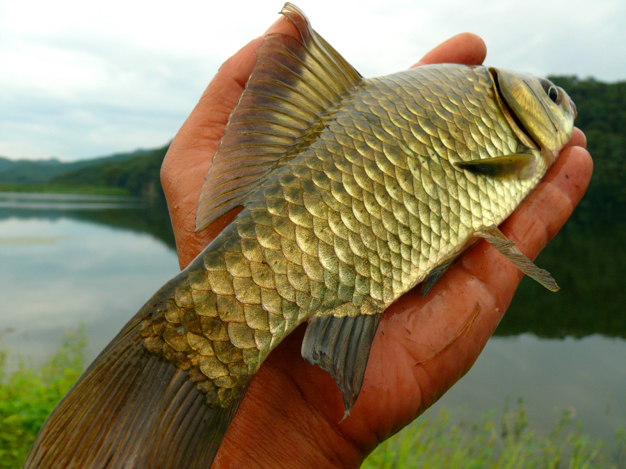 떡붕어와 토종붕어 상관없이 6치급이 걸려 나온다.