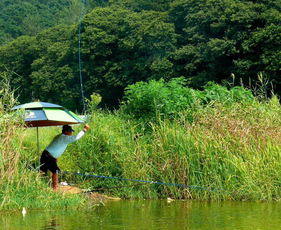 제방권에서 낮낚시를 즐기는 조사의 모습