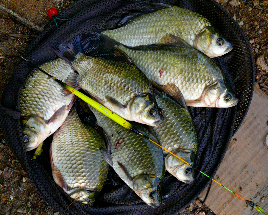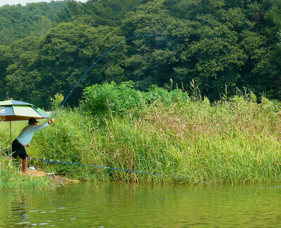 필자가 도착하고 조금 있으니 윤교수님이 한 수씩 걸어 내는데 체고가 좋고 힘도 좋은 7치급 붕어들이다.